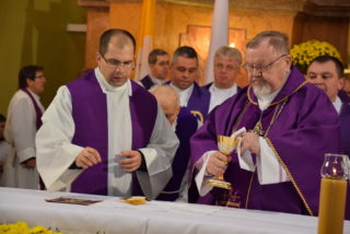 Słowo Boże wygłosił ks. prał. Henryk Nowak. Przypomniał prawdy wiary dotyczące rzeczy ostatecznych człowieka. „Spośród wielu rzeczy pewnych, śmierć jest rzeczą najpewniejszą” – powiedział kaznodzieja. Jak zauważył, człowiek ściga się ze śmiercią i szuka sposobu, jak ją zwyciężyć. Tymczasem jedyne zwycięstwo znajdujemy w zmartwychwstałym Jezusie Chrystusie. Przywołując postaci świętych, przypomniał ich podejście do śmierci, która była przez nich wyczekiwana, ponieważ traktowali ją jako narodzenie ku nowemu życiu z Bogiem.