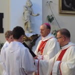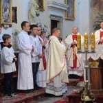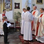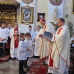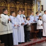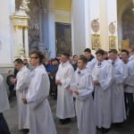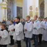 Ponieważ Wielki Czwartek to dzień w sposób szczególny poświęcony kapłanom Eucharystię rozpoczęły życzenia, jakie dzieci, młodzież ze scholii parafialnej oraz rodzina z parafii należąca do wspólnoty „Przyjaciele Oblubieńca” złożyli wszystkim kapłanom. Następnie, jak zawsze w Wielki Czwartek miał miejsce obrzęd przyjęcia nowych osób do Liturgicznej Służby Ołtarza. Kandydaci na ministrantów wobec Boga i całej wspólnoty złożyli przyrzeczenie ministranckie, po czym nałożono im pobłogosławione komże oraz pamiątkowe dyplomy przyjęcia do Służby Liturgicznej. Wielki Czwartek jest również świętem służby liturgicznej, dlatego też w tym dniu podczas Mszy Wieczerzy Pańskiej proboszcz parafii pod wezwaniem Wniebowzięcia Najświętszej Maryi Panny w Węgrowie ks. prał. Leszek Gardziński wyróżnił spośród grona ministrantów tych, którzy w tym roku sposób szczególny wykazali się gorliwością. Otrzymali oni też z rąk Księdza Biskupa dyplom i gratulacje.