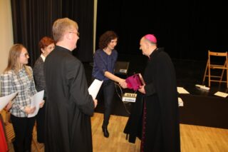 Z uczestnikami spotkał się tam również biskup drohiczyński Tadeusz Pikus, który przysłuchiwał się zajęciom, a dziękując za zaangażowanie, zarówno prowadzących, jak też uczestników, podkreślił ogromną pracę, której wymaga dobre przygotowanie muzycznych utworów chóralnych. Powiedział, że dobra muzyka i kultura poprzez harmonię i wyraz, czasami jest mocniejszy niż słowa. Może być ona szczególną formą objawienia się Boga wobec ludzi, mówił ksiądz biskup. Zaprosił on również chórzystów do współpracy w przygotowaniu do przeżycia Światowych Dni Młodzieży w diecezji drohiczyńskiej, 1050 rocznicy Chrztu Polski oraz 25 rocznicy powołania do istnienia diecezji drohiczyńskiej, która będzie uroczyście obchodzona podczas Dnia Podlasia 10 czerwca 2016 roku. Podkreślił także rolę muzyki i dobrego śpiewu w liturgii, czemu zaprzecza stosowanie do tego celu elektronicznych urządzeń odtwarzających muzykę oraz fałszowanie utworów.