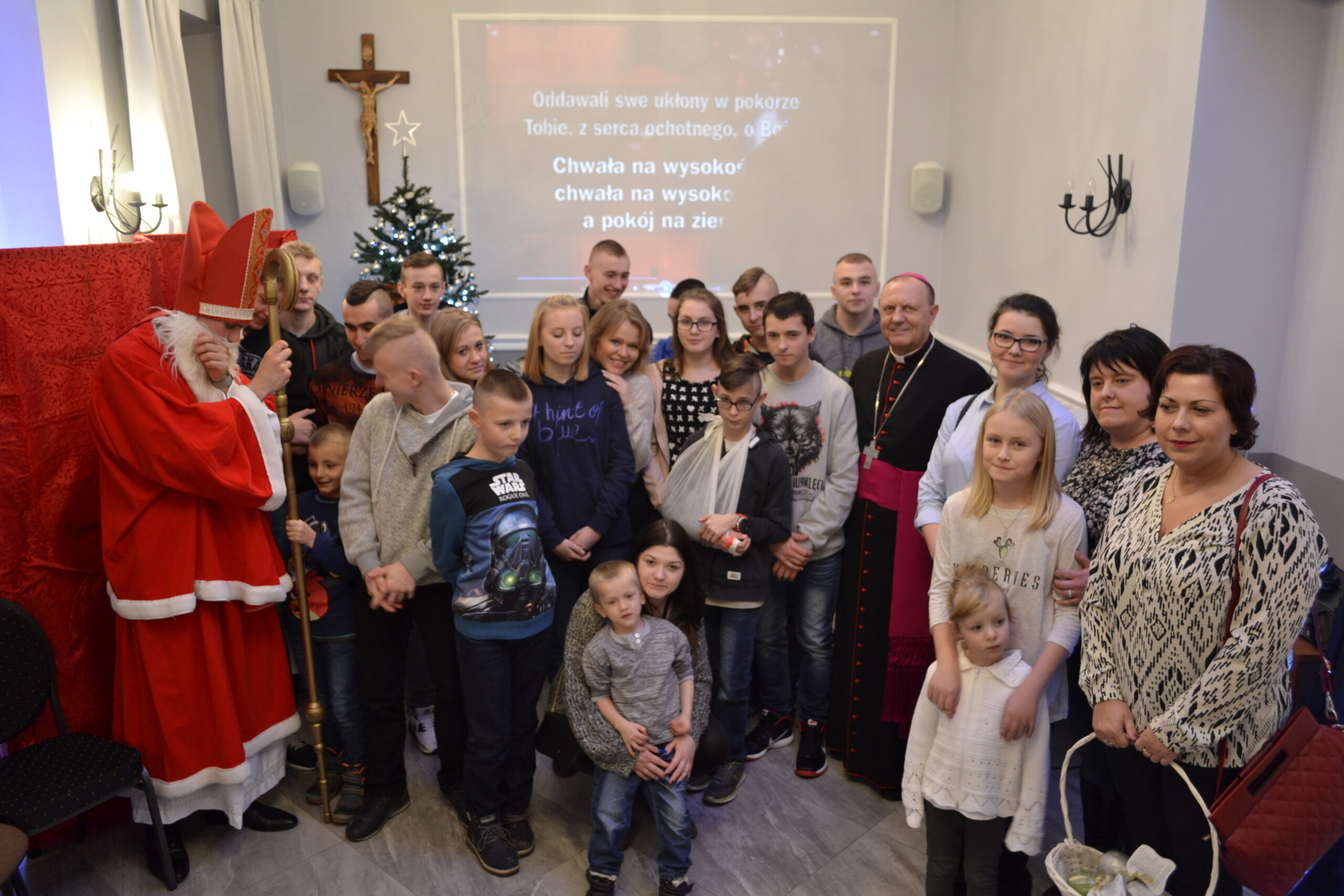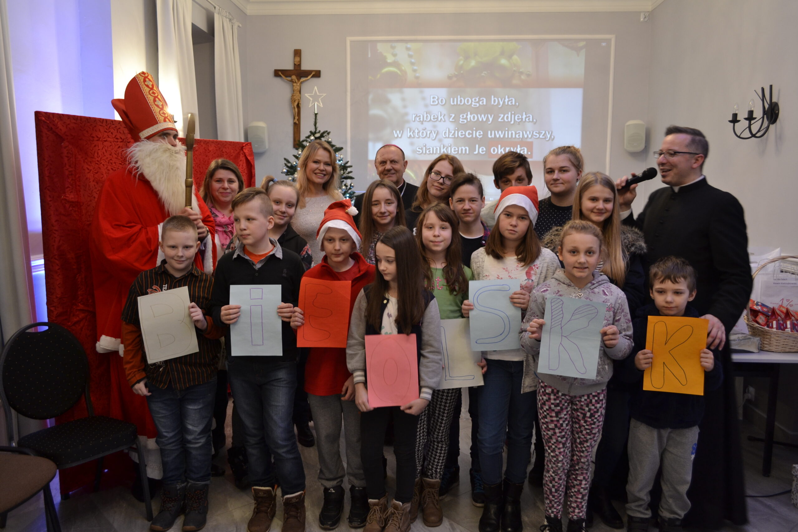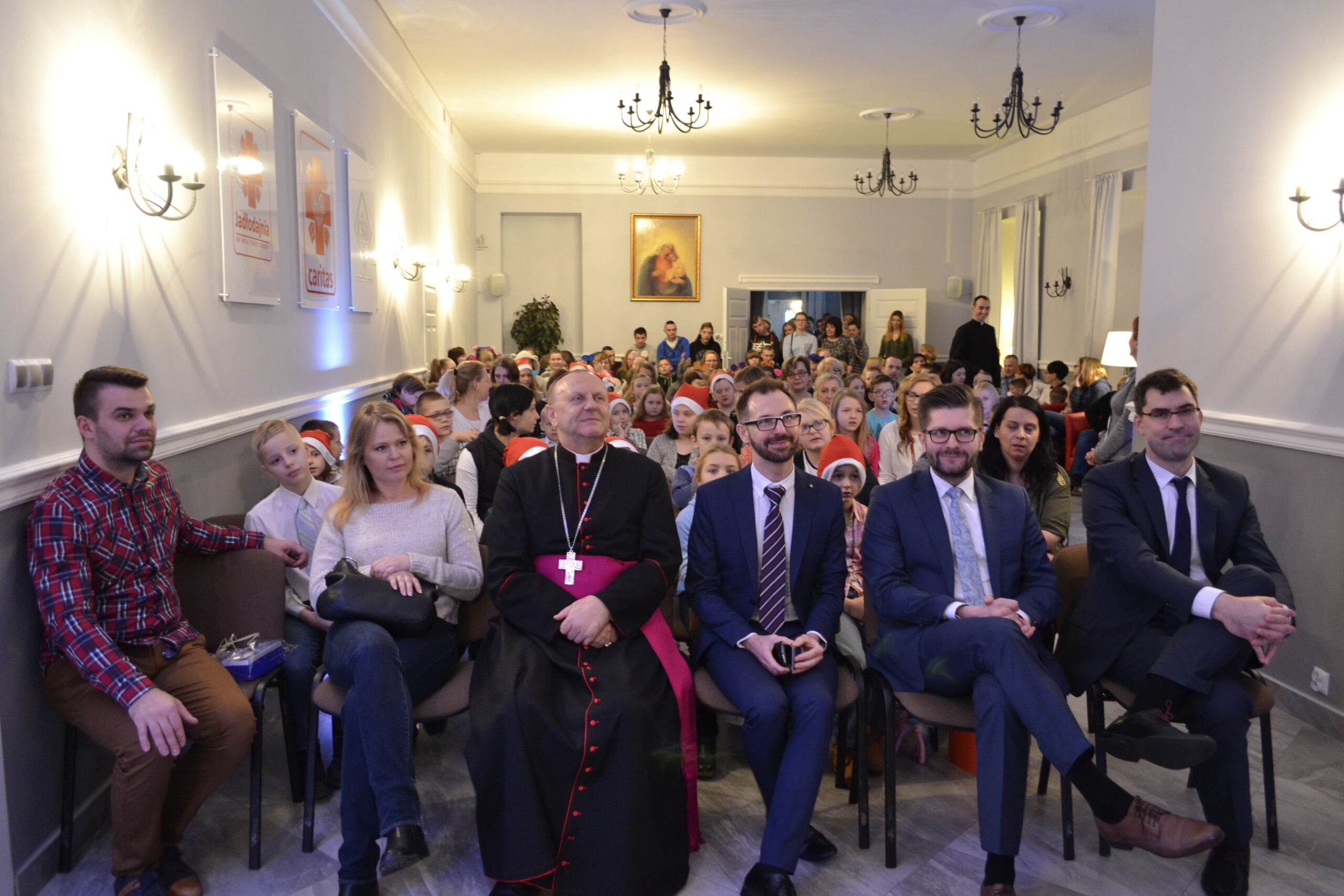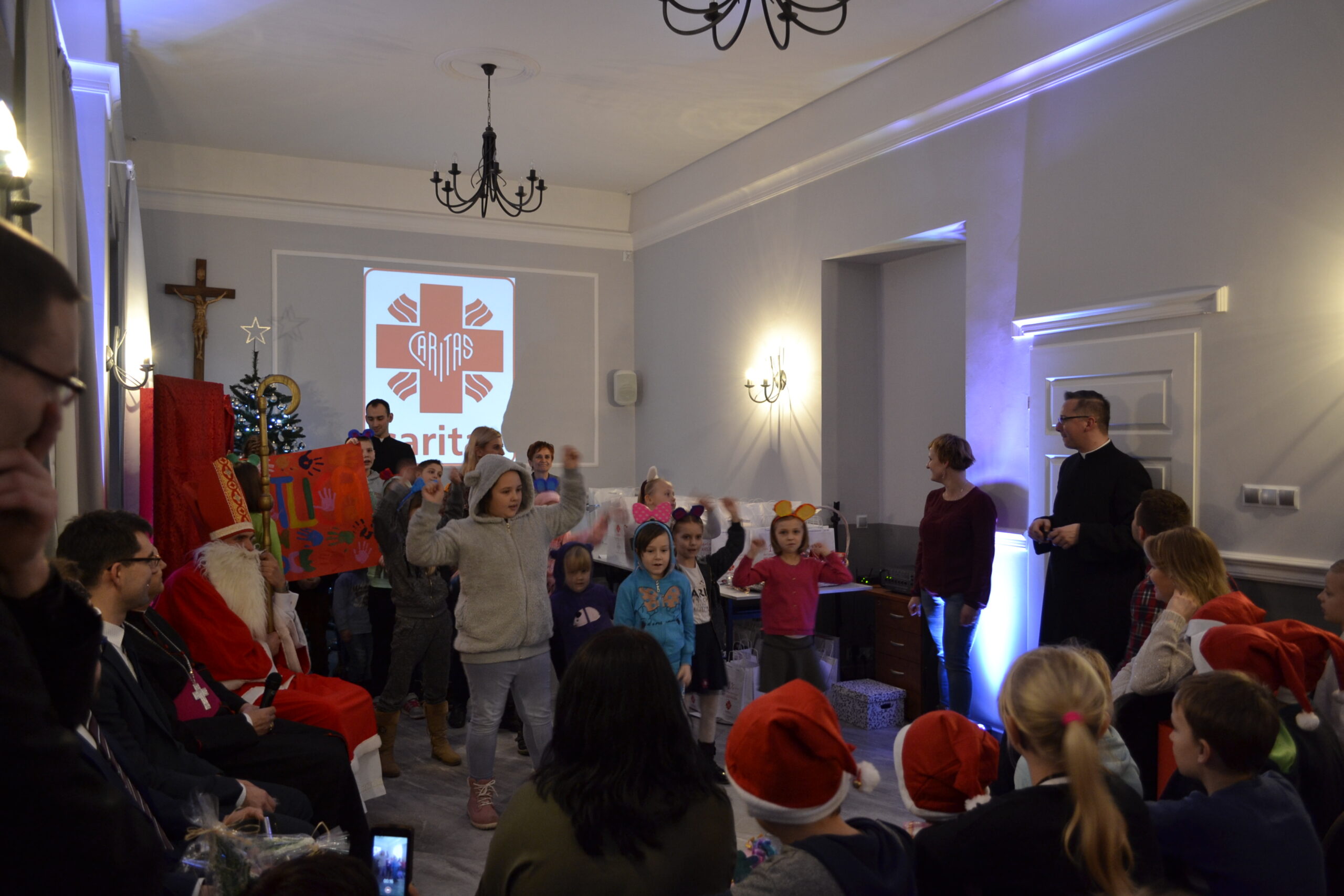 21 grudnia 2016 r. do Domu Miłosierdzia im. Jana Pawła II w Sokołowie Podlaskim przyjechali podopieczni świetlic socjoterapeutycznych prowadzonych przez Caritas  w Bielsku Podlaskim, Rudce, Siemiatyczach, Węgrowie i Sokołowie Podlaskim, niepełnosprawni biorący udział w zajęciach logopedycznych oraz dzieci i młodzież z Domu Dziecka „Julin” w Kaliskach. Przybyli oni, aby w związku ze zbliżającymi się świętami Bożego Narodzenia, spotkać się ze św. Mikołajem. Przed otrzymaniem prezentu, każda grupa przedstawiała krótką prezentację, miała również zaśpiewać wybraną kolędę. Na zakończenie spotkania członkowie kleryckiego koła Caritas zaprezentowali przedstawienie kukiełkowe o narodzeniu Jezusa. Oprócz wspólnego kolędowania, wszyscy zebrani mieli możliwość spotkać się przy wspólnym stole wigilijnym. Nie zapomniano również o podopiecznych prewentorium dla dzieci w Bacikach k. Siemiatycz – dla nich zostaną przekazane prezenty.