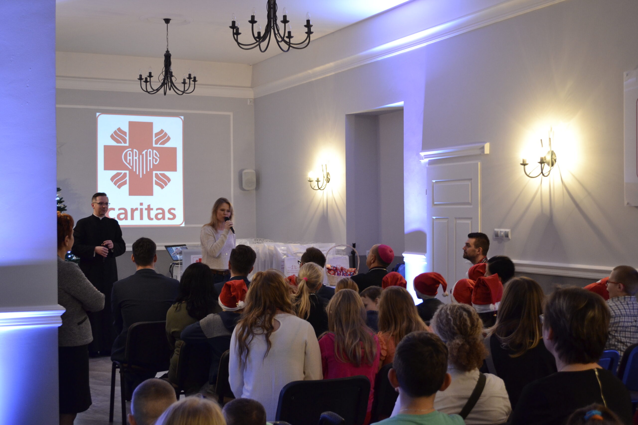 W uroczystości udział wzięli ks. bp Tadeusz Pikus, ks. Łukasz Gołębiewski – dyrektor Caritas, pracownicy banku BGŻ BNP Paribas, Magdalena Wójcik, Wojciech Słupski oraz przedstawiciele prasy. Wręczane dzieciom prezenty zostały ufundowane przez sponsorów. Dzięki akcji „Na ratunek choince” zarówno obdarowane dzieci, organizatorzy jak i również ci, których dobroć  umożliwiła zakup prezentów, mogli poczuć radość z Bożego Narodzenia.