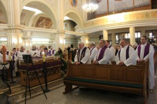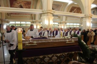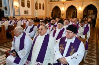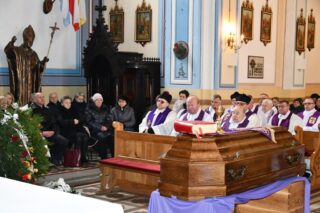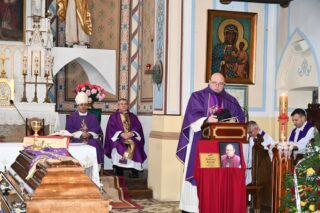 W homilii ks. Biskup nakreślił kontekst historyczny, w jakim przyszło żyć i pełnić kapłańską posługę śp. ks. Tadeuszowi Kocukowi. Nawiązując do czytań mszalnych przypomniał o chrześcijańskiej nadziei życia wiecznego, które czeka człowieka po przejściu bramy śmierci. – Ks. kan. Tadeusz Kocuk jako kapłan służył wielkiej sprawie budzenia w ludzkich sercach nadziei, otwierania ich na Bożą miłość. To wymagało bardzo dużo trudu, bo czasem nadzieja w człowieku słabnie, przygasa i trzeba ją na nowo odbudować. Czasem też miłość szarzeje i trzeba jej przywrócić blask. Na tym polega praca duszpasterska – dodał ks. Biskup.
