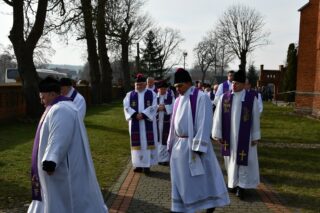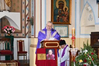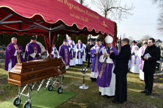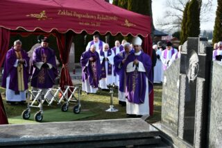 Ponad czterdziestu kapłanów, rodzina, przyjaciele, bliscy, byli parafianie żegnali zmarłego Kapłana. Jego wolą było, aby po śmierci spocząć na cmentarzu w rodzinnej parafii. Słowo wprowadzenie skierował miejscowy proboszcz ks. Bogusław Wasilewski.