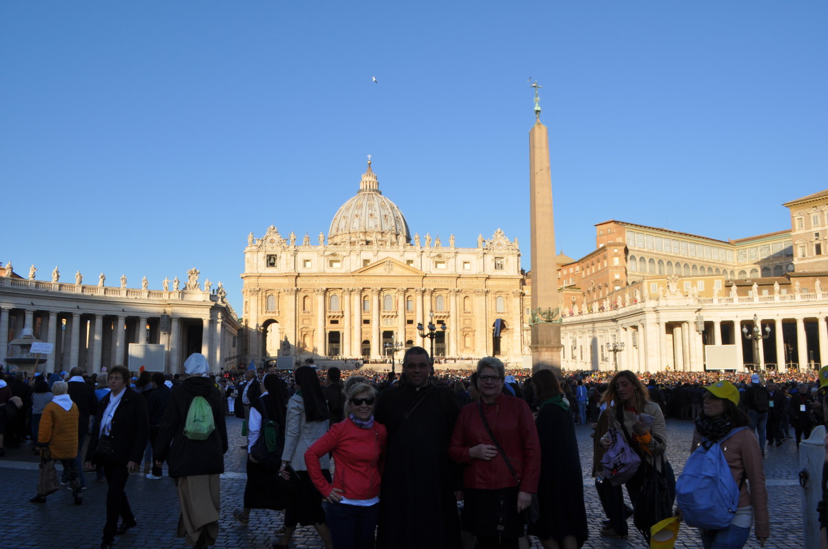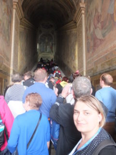 Drugi dzień pobytu w wiecznym mieście rozpoczęliśmy od uczestnictwa w audiencji generalnej z papieżem Franciszkiem na Placu św. Piotra. Mieliśmy wielkie szczęście, gdyż po wejściu na plac zajęliśmy miejsce przy barierkach, dzięki czemu dwa razy przejeżdżał obok nas Ojciec Święty i nam błogosławi. W krótkich słowach skierowanych do Polaków podziękował raz jeszcze za pobyt w Polsce w lipcu tego roku oraz podkreślił, jak ważny dla niego był ten czas. Do zebranych na placu wiernych apelował o to, aby słuchać innych ludzi i rozmawiać z nimi, a także kierować się w życiu Bożym Miłosierdziem.