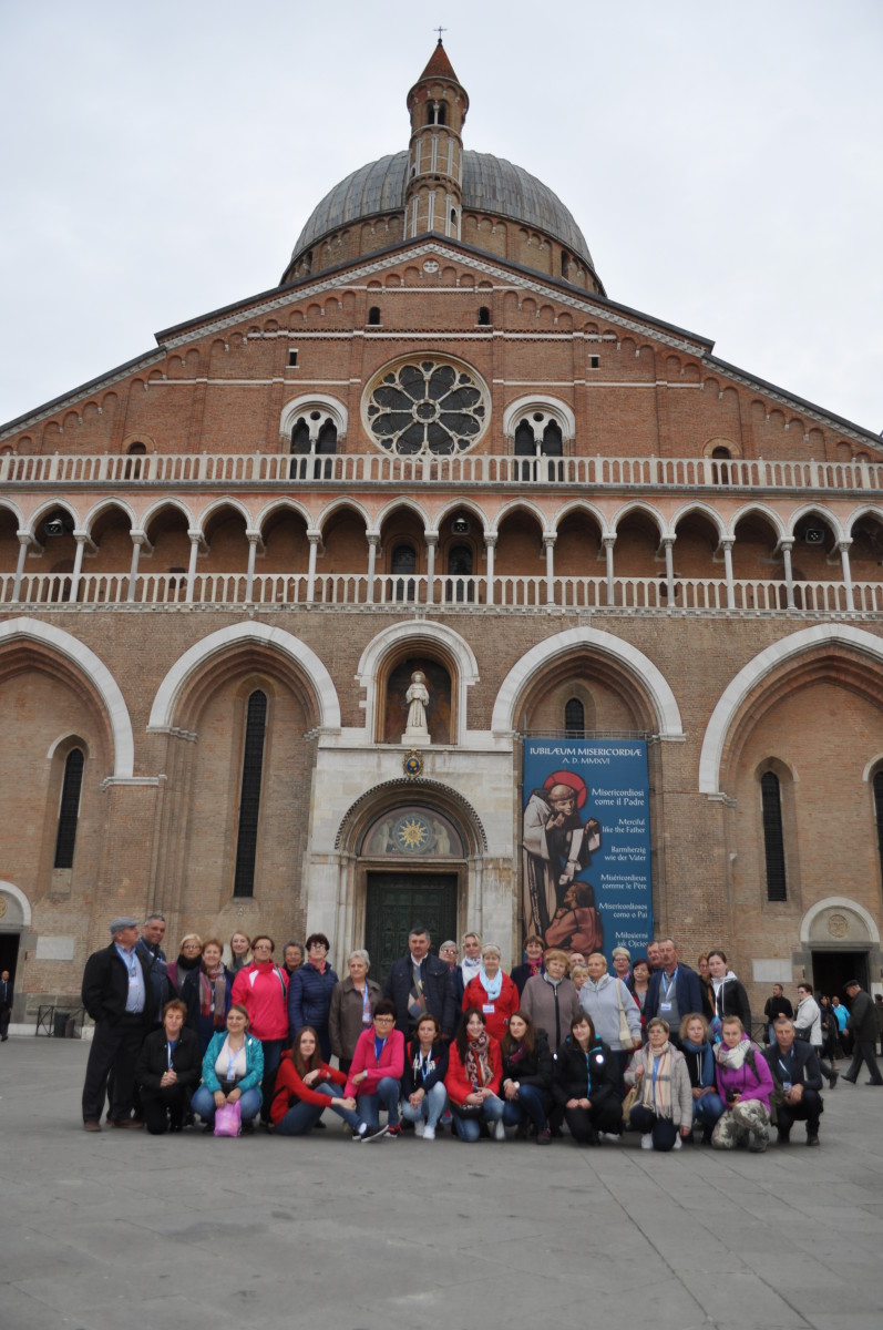 Tego dnia mieliśmy także okazję do modlitwy przy grobie św. Jana Pawła II. Wielu czekało na ten dzień od początku pielgrzymki kiedy tylko wyruszyliśmy z Drohiczyna. Nie jednemu łza w oku się zakręciła podczas modlitwy przy grobie naszego Wielkiego Polaka. Sobotnie świecące słońce zachęcało do zwiedzania kolejnych wartych zobaczenia miejsc m.in. Koloseum, Fontanna Di Trevi, Panteon, hiszpańskie schody, Forum Romanum. Nie zabrakło także wolnej chwili na spróbowanie słynnej włoskiej pizzy i lodów. Gdy w Rzymie zwiedziliśmy i zobaczyliśmy wszystko to co było warte uwagi, wyruszyliśmy w dalszą podróż po Włoszech, aż dojechaliśmy do Padwy – miejscowości gdzie znajduje się bazylika i grób św. Antoniego Padewskiego – patrona osób i rzeczy zaginionych oraz Wenecji – miasta na wodzie, do którego przybywają zakochani z całego świata, aby odbyć rejs gondolą po wodnych, bardzo krętych uliczkach miasta. Wenecja to także miasto św. Marka, którego relikwie znajdują się w Bazylice jego imienia.