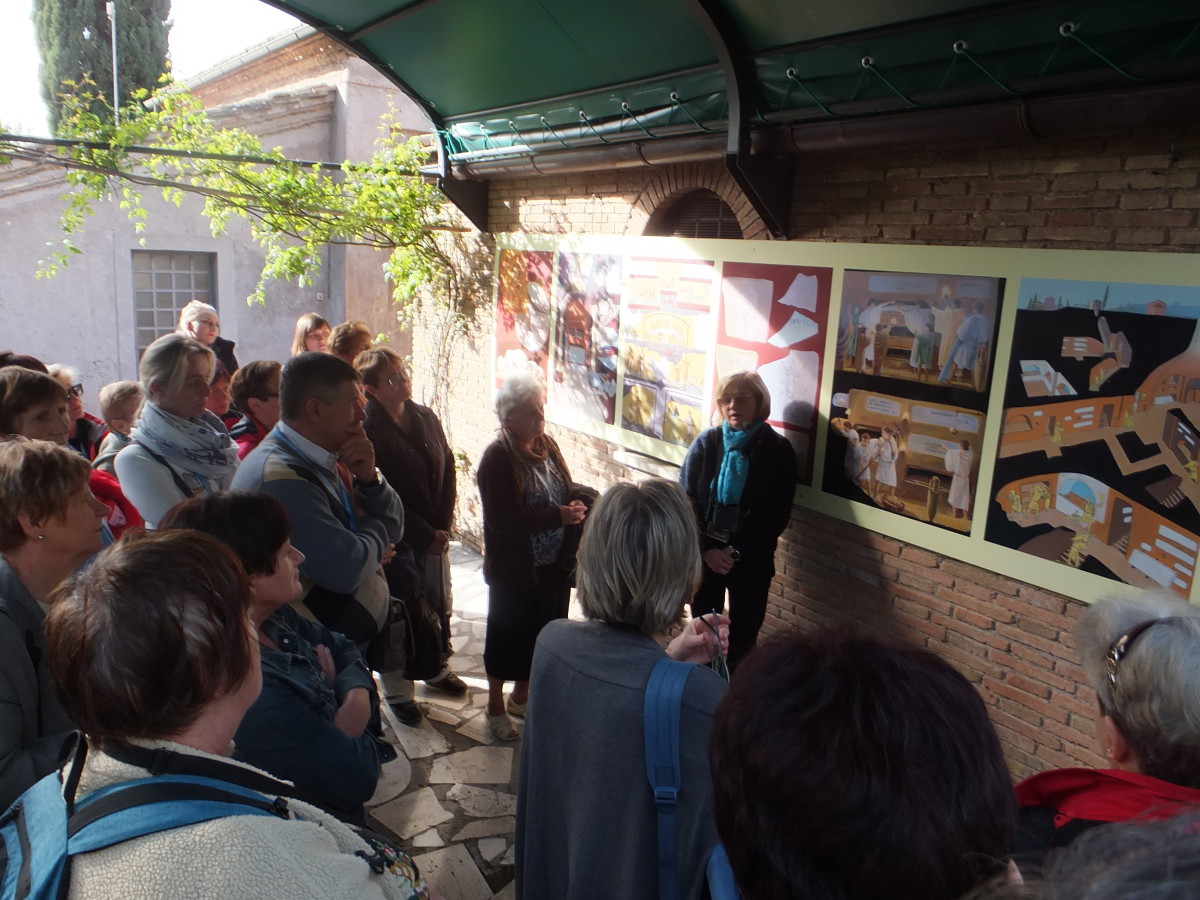 Kolejny dzień naszego pielgrzymowania obfitował w zwiedzanie najważniejszych miejsc w Rzymie a były to: katakumby miejsce gdzie spoczywają święci męczennicy i kilka tysięcy chrześcijan, kościół Quo Vadis, który powstał w miejscu spotkania św. Piotra z Chrystusem a w jego wnętrzu znajduje się kopia odcisku stóp Jezusa w kamieniu. Według tradycji Henryk Sienkiewicz będąc w tym kościele wpadł na pomysł napisania swojego dzieła „Quo Vadis”.