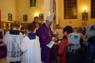 Na zakończenie słowa wdzięczności wyraziła przedstawicielka parafii Iwona Bartoszuk. Zapewniła o życzliwości i modlitwie całej wspólnoty w intencji Pasterza Diecezji. Po błogosławieństwie ks. Biskup dzieciom i młodzieży wręczył pamiątkowe obrazki.