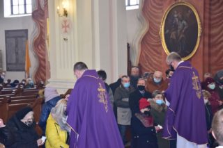 Istotną i wymowna częścią liturgii było posypanie głów popiołem. Z racji pandemicznych obrzęd ten był nieco zmodyfikowany. Po odmówieniu modlitwy błogosławieństwa ks. Biskup tylko jednen raz wypowiedział formułę „Nawracajcie się i wierzcie Ewangelii”, po czym kapłani w milczeniu nakładali popiół na głowy wiernych.