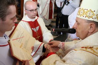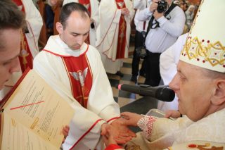 Nowo wyświęceni kapłani to ks. Mateusz Gołoś z parafii Wniebowzięcia Najświętszej Maryi Panny w Węgrowie, ks. Patryk Nagórny z parafii Narodzenia Najświętszej Maryi Panny w Ostrożanach, ks. Bartosz Ojdana z parafii św. Jana Chrzciciela w Sadownem, ks. Mateusz Roguski z parafii św. Wawrzyńca w Korytnicy oraz ks. Michał Siduniak z parafii św. Apostołów Piotra i Pawła w Siemiatyczach Stacji. Ten szczególny dzień w ich życiu przeżywali razem ze swoimi bliskimi i przyjaciółmi, którzy wypełnili drohiczyńską katedrę. Nie brakowało również kapłanów, którzy licznie przybyli, aby włożyć swe ręce na głowy neoprezbiterów. Swoją reprezentację miały różne zgromadzenia zakonne, nie mogło zabraknąć również alumnów, którzy przez lata towarzyszyli nowo wyświęconym w codziennych dolach i niedolach.
