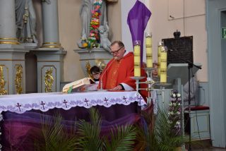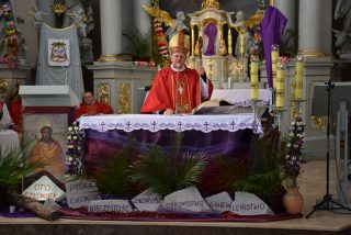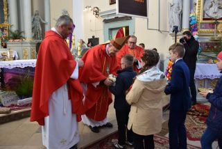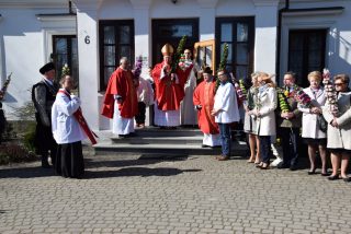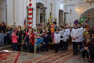 Ks. bp Tadeusz Pikus pogratulował pięknie wykonanych palm wielkanocnych. Dodał, że wysiłek – niewątpliwie towarzyszący pracy – skierowany jest na chwałę Bożą, jak również ku pocieszeniu naszych oczu. Odwołując się do przypadającego w tym dniu Święta Chrztu Polski, ks. Biskup zauważył w homilii, że Chrystus tak jak do Jerozolimy, wjechał do naszej Ojczyzny. – Trzeba pamiętać, że Jezus Chrystus, nie tyko przychodzi, aby go witać, ale przychodzi, aby być z nami. Pragnie odmieniać nasze serca i pojednać je z Panem Bogiem – podkreślił.