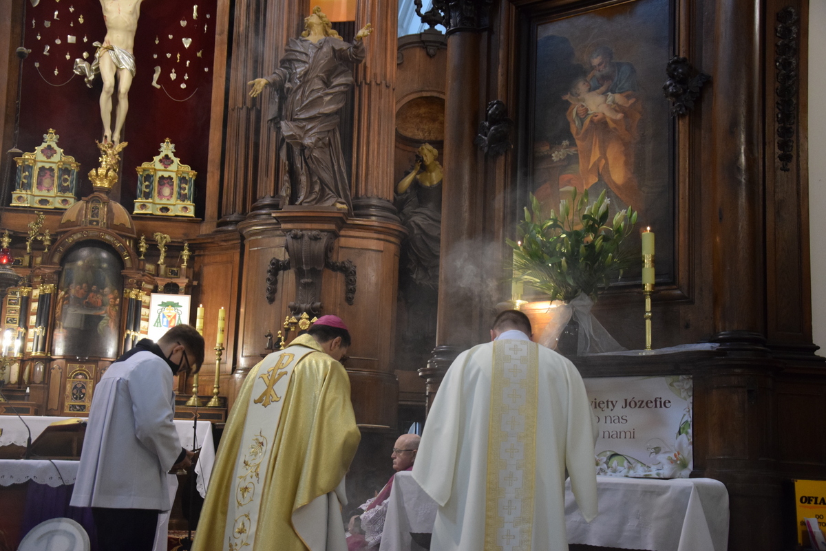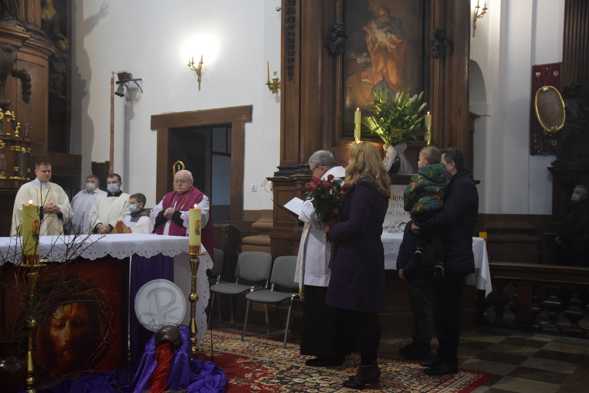 – Uczestniczymy w głównej diecezjalnej celebracji Roku św. Józefa, który już trwa i jednocześnie rozpoczęcia Roku Rodziny Amoris laetita – zauważył bp Sawczuk. Ekscelencja przypomniał, że Rok św. Józefa ogłosił Ojciec św. Franciszek z okazji 150-tej rocznicy ustanowienia św. Józefa Patronem Kościoła Katolickiego. Ks. Biskup wskazał, że to pragnienie narastało u Papieża jeszcze mocniej w czasie pandemii, kiedy ,,mogliśmy doświadczyć pośród dotykającego nas kryzysu, że jak pisał ,,nasze życie jest tkane i wspierane przez zwykłe osoby – zazwyczaj zapominane – które nie wstępują w tytułach gazet i magazynów…, a piszą ważne karty naszej historii”. – Dominującym motywem ustanowienia Roku św. Józefa, jest dostrzeżenie wkładu cichych i ofiarnych ludzi w tworzenie wspólnego dobra i dawania poczucia bezpieczeństwa – zauważył Ekscelencja. Przypomniał również, że to właśnie św. Józef – wielki święty stojący na ,,drugiej linii” jest wspaniałym Patronem takich właśnie ludzi.