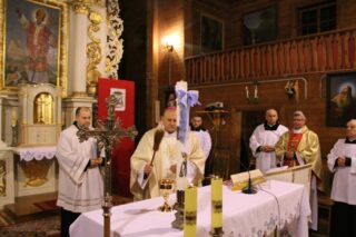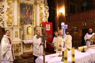 Ksiądz biskup przekazał parafii puszkę do przechowywania Najświętszego Sakramentu, prosząc też o dobre zabezpieczenie i czujność, gdy zostanie zamontowane nowe tabernakulum.