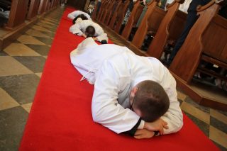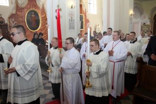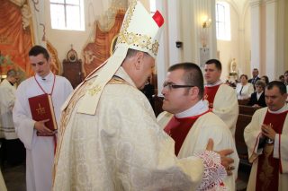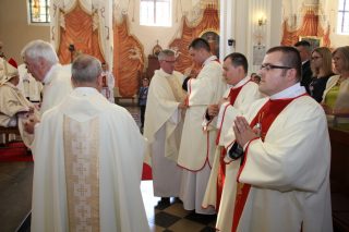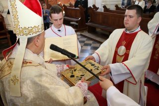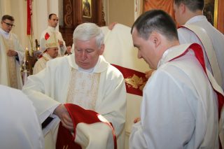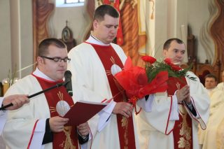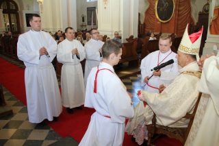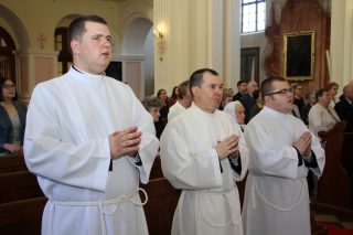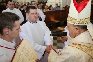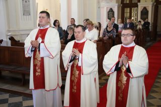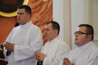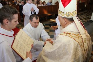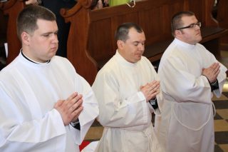 Alumni: Beniamin Sęktas, Paweł Sierakowski oraz Arkadiusz Szmurło przez nałożenie rąk oraz modlitwę konsekracyjną zostali wyświęceni na diakonów przez ks. bpa Tadeusza Pikusa. Ten najważniejszy moment poprzedziła prezentacja kandydatów, którzy wyrazi wolę przyjęcia święceń. Złożyli również przyrzeczenia posłuszeństwa, celibatu oraz zobowiązali się do modlitwy Liturgią Godzin. Wymownym momentem był śpiew Litanii do Wszystkich Świętych, podczas którego przyszli diakoni leżeli krzyżem. Zewnętrznym znakiem przyjętych święceń są właściwe diakonom szaty liturgiczne w postaci dalmatyki oraz stuły przewieszonej przez lewe ramię.