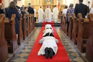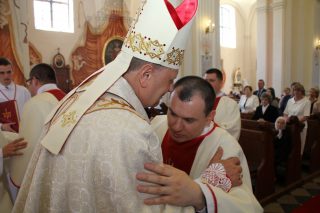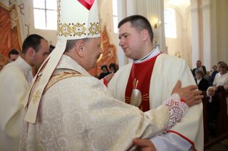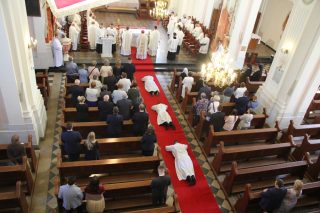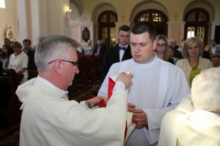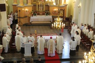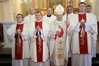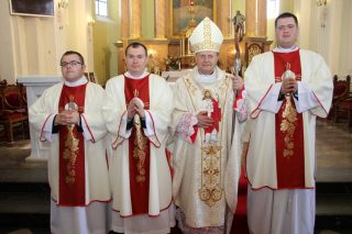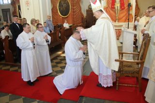 Ks. bp Tadeusz Pikus 31 maja 2019 r. w drohiczyńskiej katedrze udzielił święceń diakońskich trzem alumnom Wyższego Seminarium Duchownego w Drohiczynie.