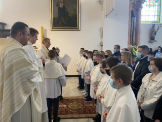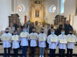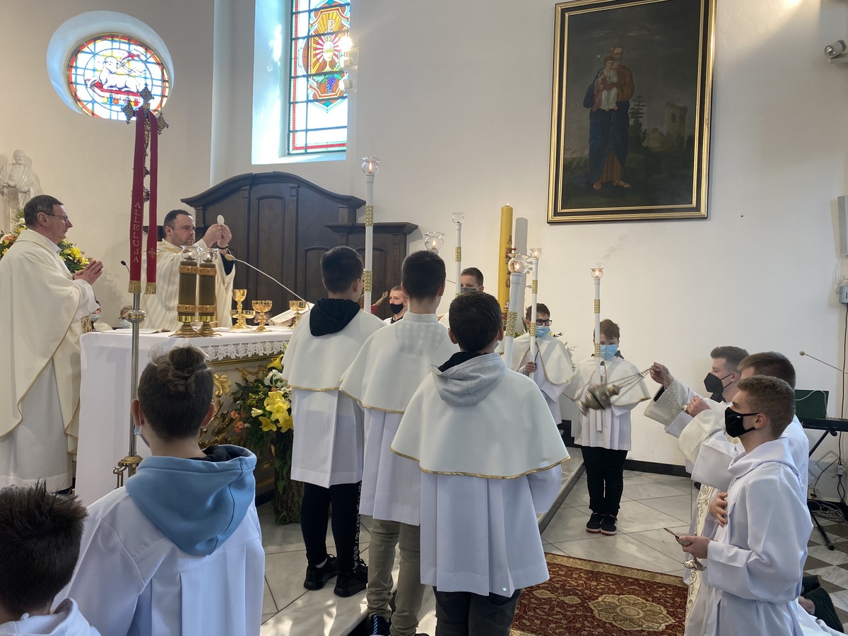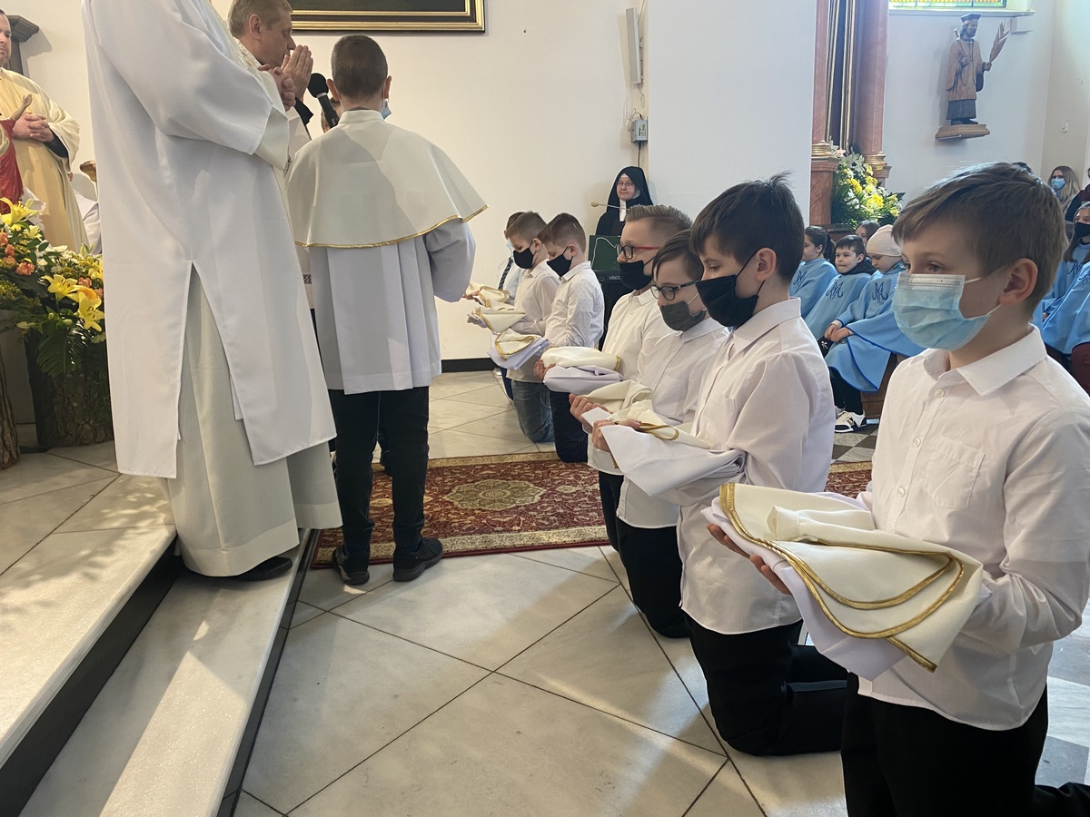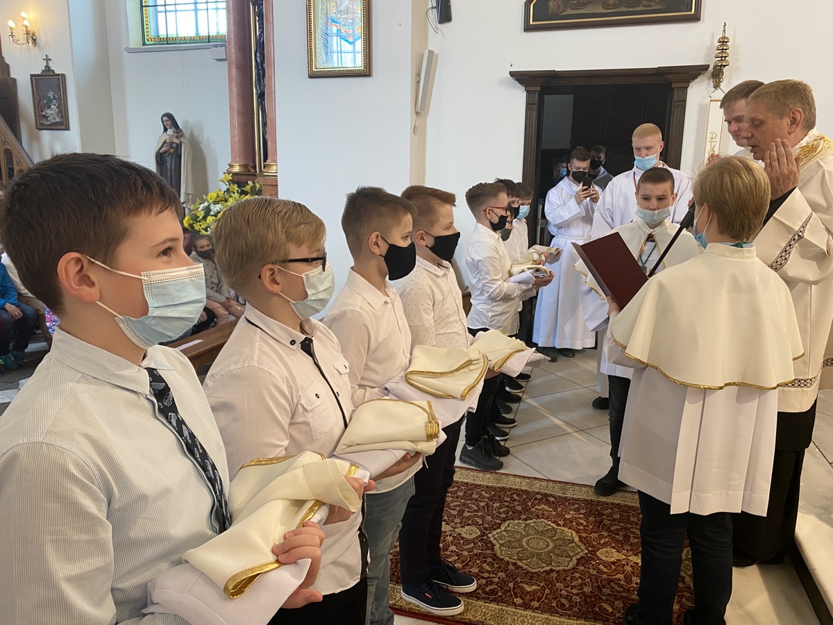 Nowym ministrantom przyszło formować się w trudnych okolicznościach, ale bynajmniej nie był to powód do osłabienia ich ducha. Wręcz przeciwnie! Nowe okoliczności rodzą przecież nowe szanse. Rozpoczęli oni swoją formację bezpośrednio po I komunii świętej, która z racji epidemii była przełożona na sierpień ubiegłego roku. Po kilku tygodniach, w obliczu nowych restrykcji, odbywali swoją formację niejako w formie hybrydowej. Część spotkań miała miejsce on-line, przy użyciu różnych narzędzi internetowych. W tę formę włączyli się również starsi ministranci, którzy dla kandydatów przygotowywali specjalne prezentacje multimedialne dotyczące konkretnych zagadnień liturgicznych. W miarę możliwości kandydaci odbywali również przygotowanie na żywo, uczestnicząc w życiu liturgicznym parafii oraz specjalnych szkoleniach tematycznych.