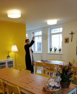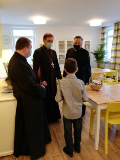 Nabożeństwu przewodniczyli ks. Mariusz Bartosiak, proboszcz parafii oraz ks. Łukasz Gołębiewski, dyrektor Caritas Diecezji Drohiczyńskiej. W tym dniu ks. bp Piotr Sawczuk w obecności swojego sekretarza, ks. Tomasza Szmurło pobłogosławił wychowanków oraz poświęcił budynek. Dzieci bardzo chętnie oprowadziły gości po placówce, były pełne entuzjazmu i radości. Mamy nadzieję, że zainaugurowanie działalności z Bożym błogosławieństwem będzie początkiem nowego, szczęśliwego etapu życia dla naszych wychowanków i właśnie w tym miejscu odnajdą swój wymarzony, bezpieczny dom, pełen miłości i zrozumienia.