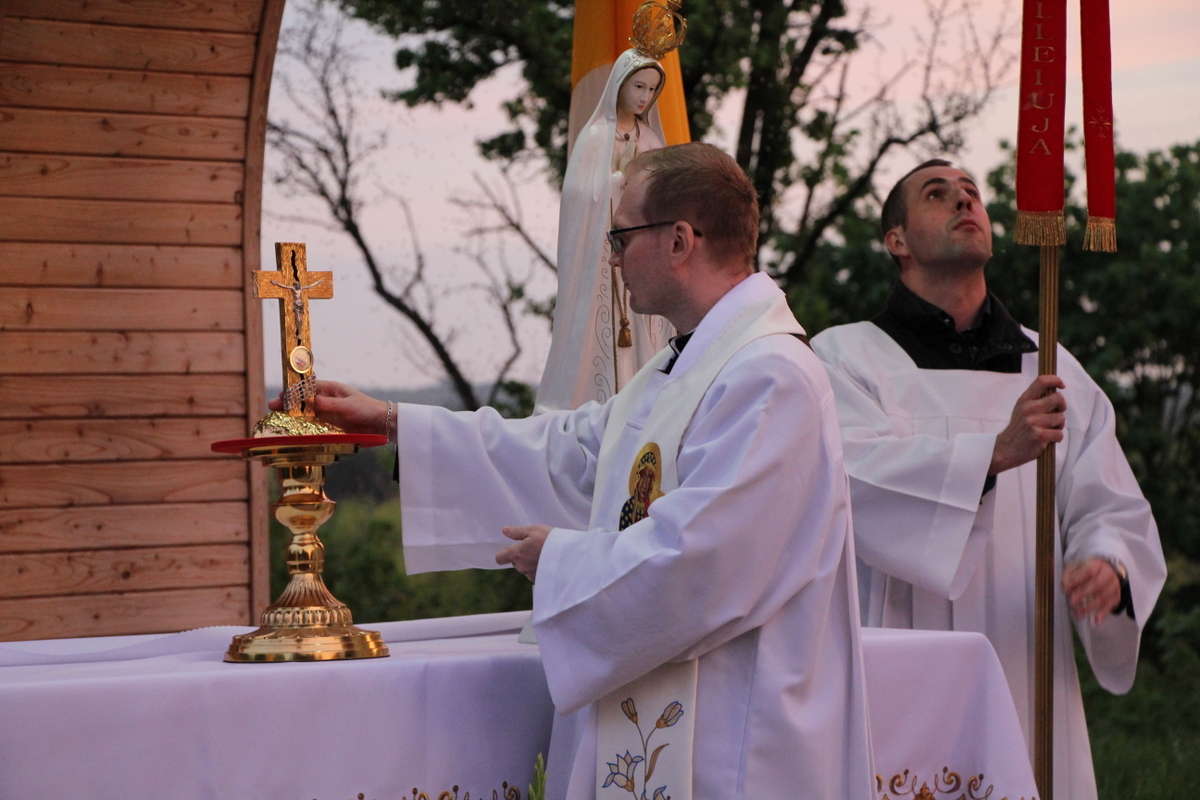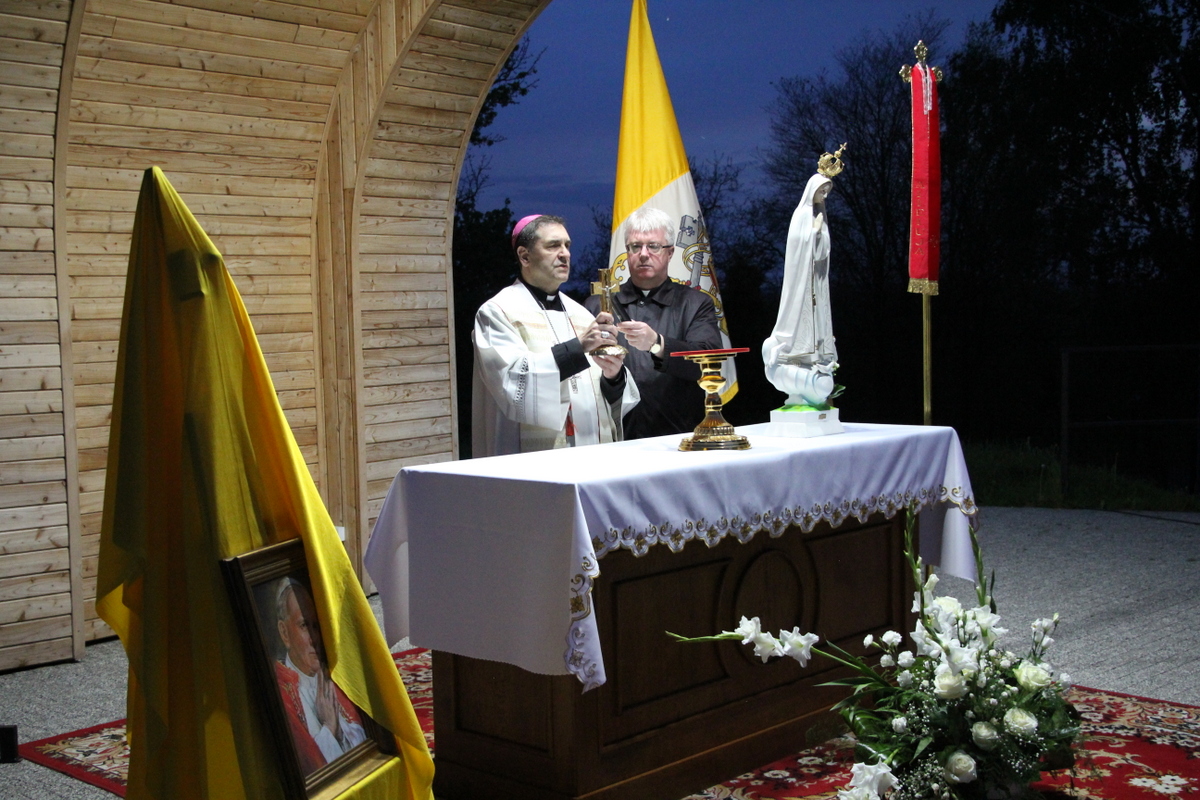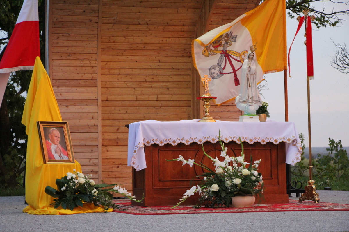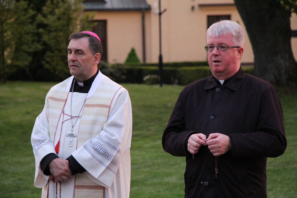 Po procesyjnym wniesieniu relikwii św. Jana Pawła II, ks. dziekan rozpoczął modlitwę różańcową. W rozważaniach tajemnic różańcowych nawiązywał do życiorysu świętego papieża, ukazując, w jaki sposób Karol Wojtyła dążył do świętości. Zebrani w sposób szczególny modlili się o ducha wiary w rodzinach oraz o nowe i liczne powołania do służby kapłańskiej i zakonnej. Następnie wszyscy zebrani odmówili Litanię Loretańską oraz zaśpiewali Apel Jasnogórski. Ksiądz biskup Piotr Sawczuk pobłogosławił zgromadzonych relikwiami św. Jana Pawła II. Na zakończenie wszyscy zebrani odśpiewali „Barkę”.