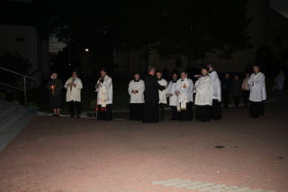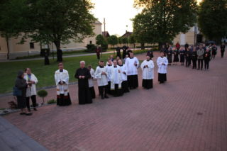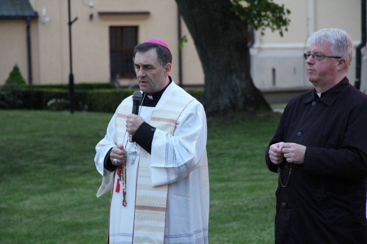 Na modlitwę różańcową na placu obok katedry zgromadzili się: biskup Piotr Sawczuk, biskup senior Antoni Dydycz, kapłani pracujący w kurii, seminarium oraz posługujący w parafii katedralnej, siostry zakonne, alumni Wyższego Seminarium Duchownego oraz parafianie. Modlitwy odbyły się przy krzyżu drohiczyńskim oraz nastawie ołtarzowej, które swoim wyglądem nawiązują do ołtarza papieskiego z 1999 roku, przy którym papież Jan Paweł II sprawował nabożeństwo ekumeniczne.