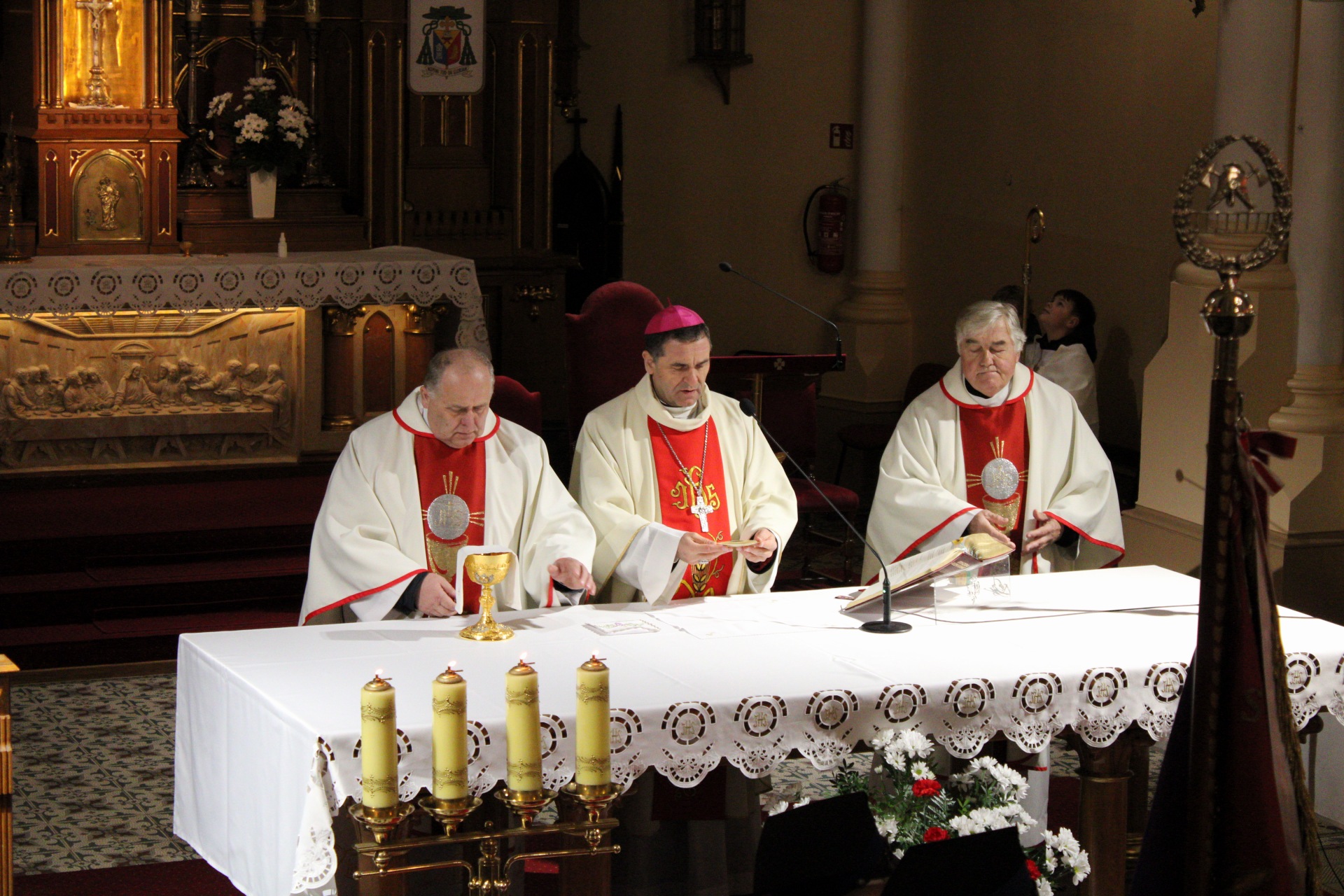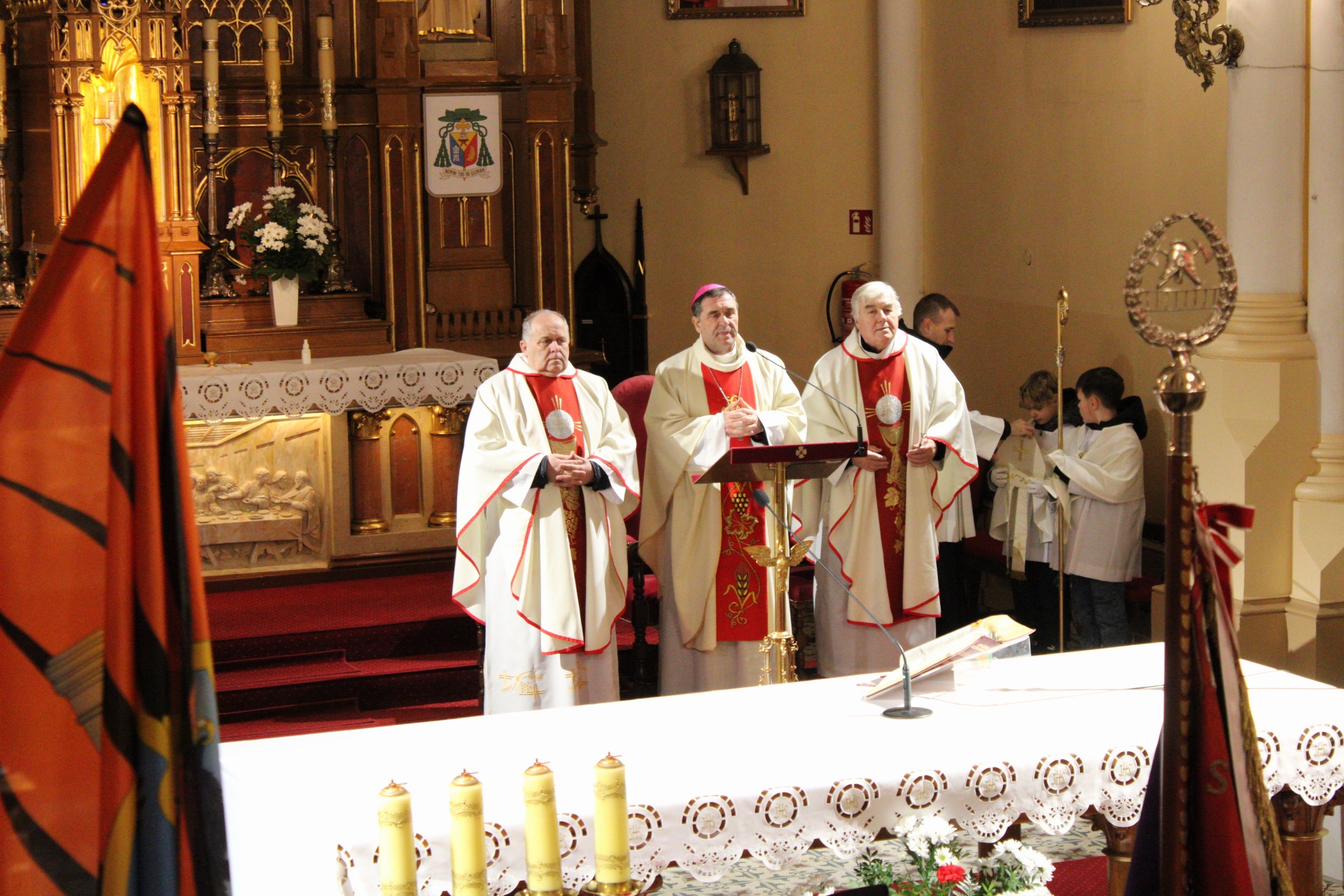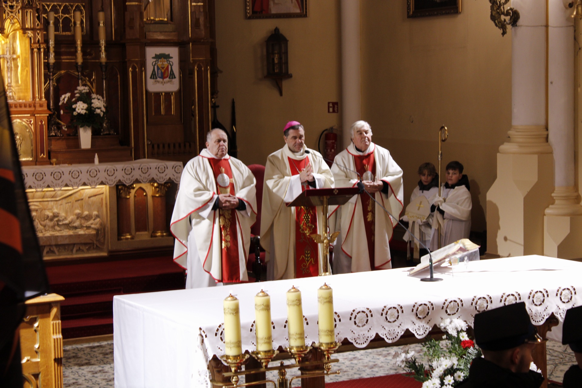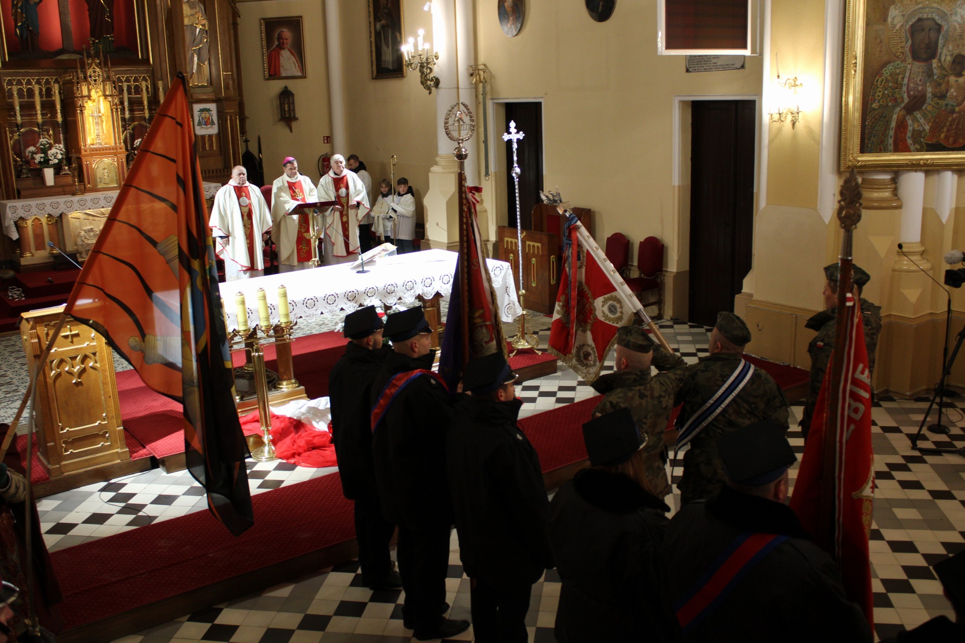 Po krótkim przywitaniu do świątyni zostały wprowadzone poczty sztandarowe, a następnie została rozpoczęta Eucharystia, której przewodniczył bp Piotr Sawczuk, a koncelebrowali ją ks. kan. Stanisław Wojciechowski oraz ks. proboszcz Antoni Kunicki. Proboszcz parafii również powitał wszystkich gości, którzy zgromadzili się na uroczystości. Biskup modlił się w intencji zmarłych poległych dla ojczyzny oraz wszystkich zgromadzonych, natomiast ks. proboszcz sprawował Mszę św. w intencji polecanych w wypominkach, a ks. kanonik w intencji zmarłych z parafii Sadowne.