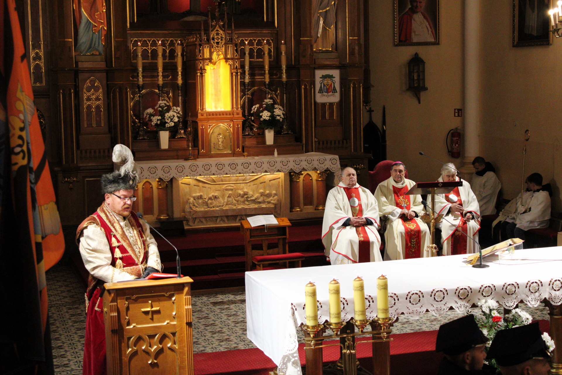 Słowo Boże wygłosił bp Piotr Sawczuk. Na początku przypomniał zebranym po co się tu zgromadziliśmy, mianowicie po to, aby modlić się za członków Bractwa Kurkowego Rzeczypospolitej, aby wziąć udział w 25-leciu Samorządu Województwa Mazowieckiego, a także by wspomnieć 193 rocznicę wybuchu Powstania Listopadowego. Co prawda na terenie Sadownego nie odbyły się żadne bitwy tego powstania, ale znajduję się nagrobek Kajetana Wolińskiego urodzonego w 1801r., który brał udział w Powstaniu Listopadowym. Otrzymał on najwyższe odznaczenie wojskowe krzyż Virtuti Militari. Ten bohaterski żołnierz odmówił służby wojskom carskim za co został zesłany na Syberię, wrócił stamtąd i zmarł w Kołodziążu i został pochowany na cmentarzu parafialnym. 29 listopada była 154 rocznica jego śmierci. Jednak szczególnie skupiliśmy się na wybuchu Powstania Listopadowego podczas którego około 140 tys. powstańców prowadziło walkę o wolność – mówił biskup Sawczuk.