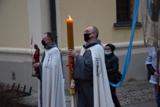 W świątyni rozbrzmiał hymn Ciebie Boga wysławiamy, który wrażał radość paschalną. Jak zauważył w homilii ks. Biskup, zmartwychwstanie jest odpowiedzią na krzyk Jezusa na krzyżu – Boże mój Boże, czemuś mnie opuścił. Jest to również odpowiedź na nasze lęki, na dopadająca poczucie opuszczenia i obciążenia ponad siły. Chrystus zmartwychwstał, a to znaczy, że również i nas Bóg nie opuści. „Wielu ludzi rozpamiętuje swoje porażki, roztrząsa je podsycając własny smutek i poczucie klęski. Warto może to zostawić i wrócić do początku, spojrzeć świeżym okiem, zaufać Panu Bogu. On jest gotów przyjść ze światłem i radą, jest w stanie wskrzesić to, co nam umiera, np. małżeństwo dotknięte kryzysem, bylebyśmy tylko opuścili nas upór, nasze racje i przyjęli od Chrystusa Jego dary” – powiedział kaznodzieja. Życzył, aby „łaska Zmartwychwstałego Pana ogarnęła nasze serca i zbudziła je do życia”.