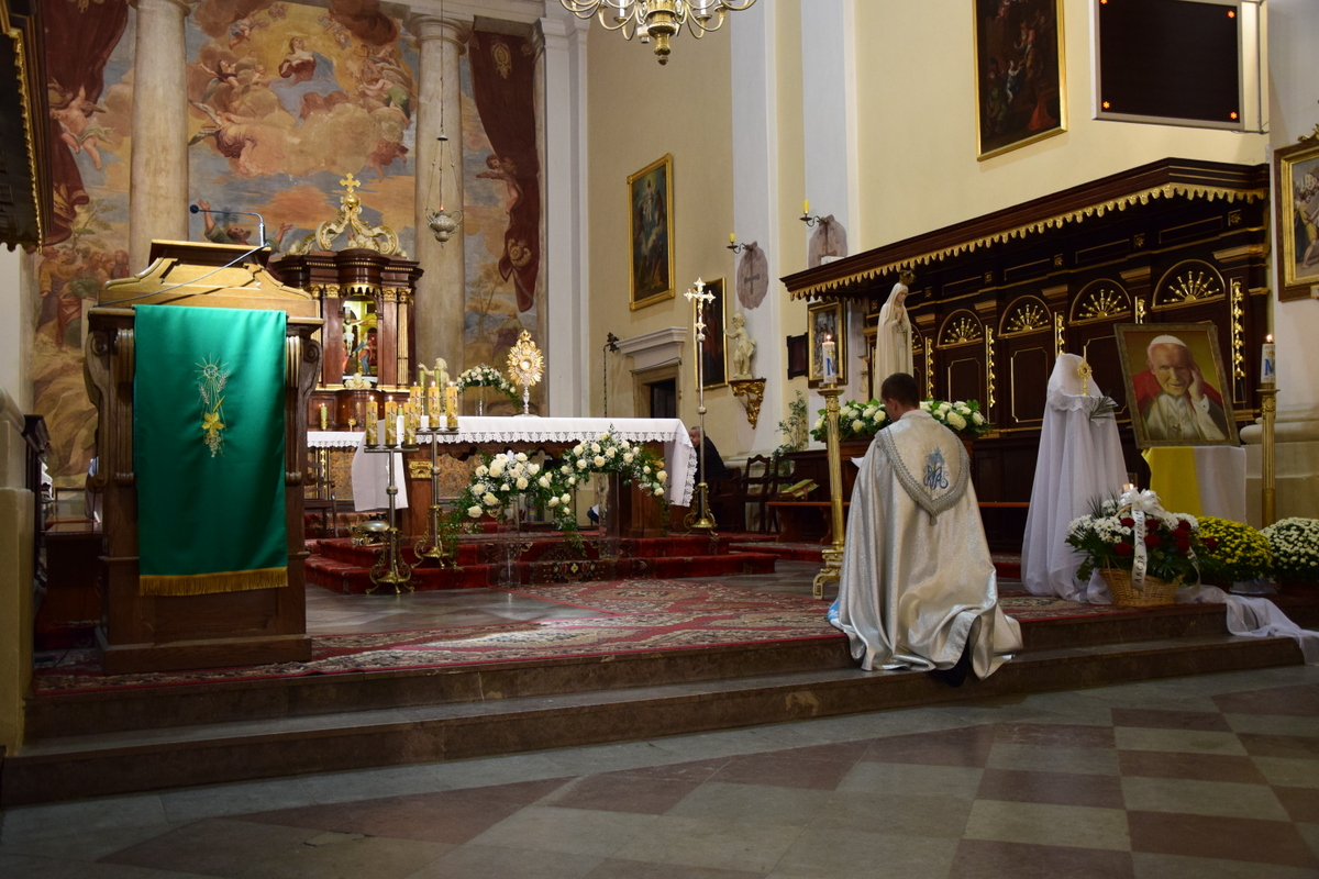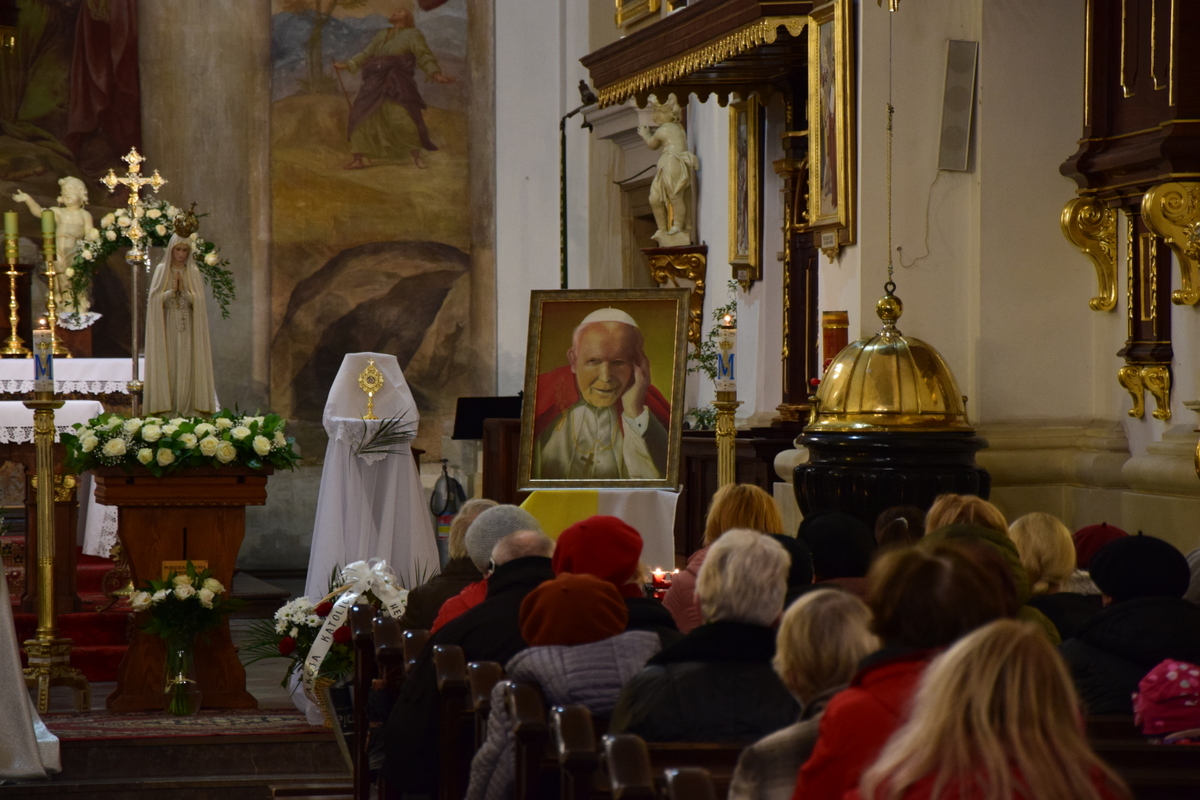 Przed Mszą św. nastąpiło wystawienie Najświętszego Sakramentu i półgodzinna adoracja. Podczas modlitwy wstawienniczej ks. Wojciech Wysocki, miejscowy wikariusz, odczytywał spisane przez wiernych i złożone w skrzyni pod figurą MB Fatimskiej intencje. We wtorek rozpoczęto również dziewięciodniową Nowennę przed liturgicznym wspomnieniem św. Jana Pawła II. Przygotowana specjalnie na tą okazję modlitwa stała się zwieńczeniem czuwania przy Jezusie Chrystusie obecnym w Żywym Chlebie na ołtarzu.