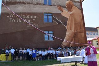 Zanim ks. bp Tadeusz Pikus poświęcił mural wyraził radość oraz wdzięczność z powodu realizacji tego projektu. Jest to kolejny element na mapie Drohiczyna upamiętniający to doniosłe wydarzenie.