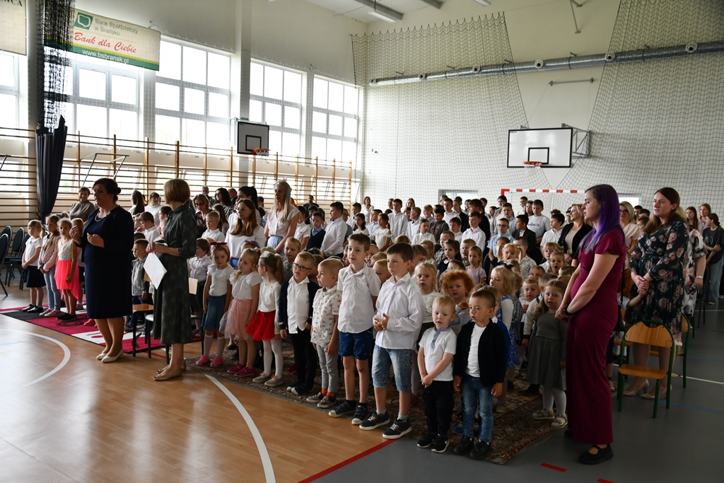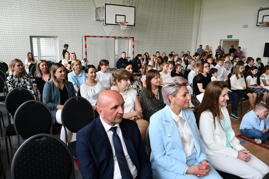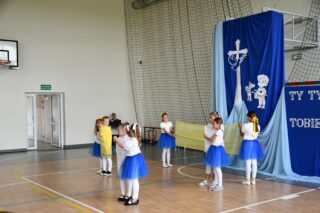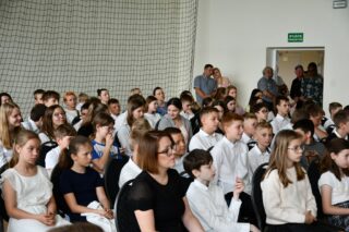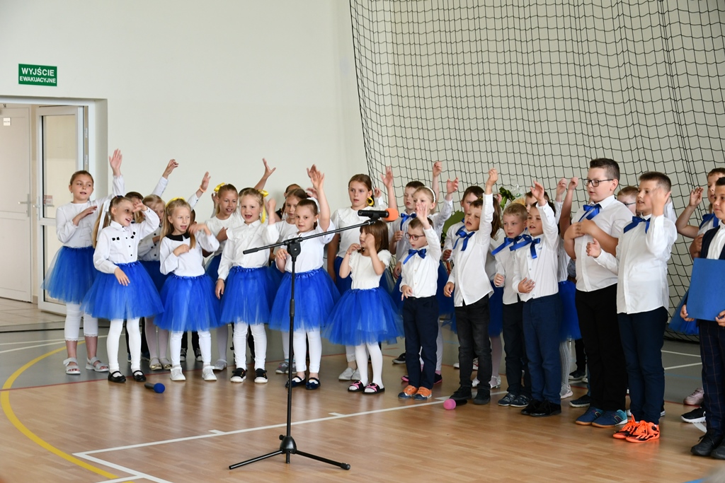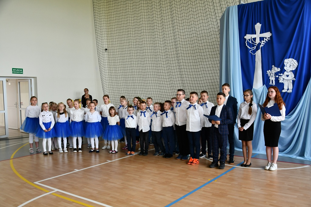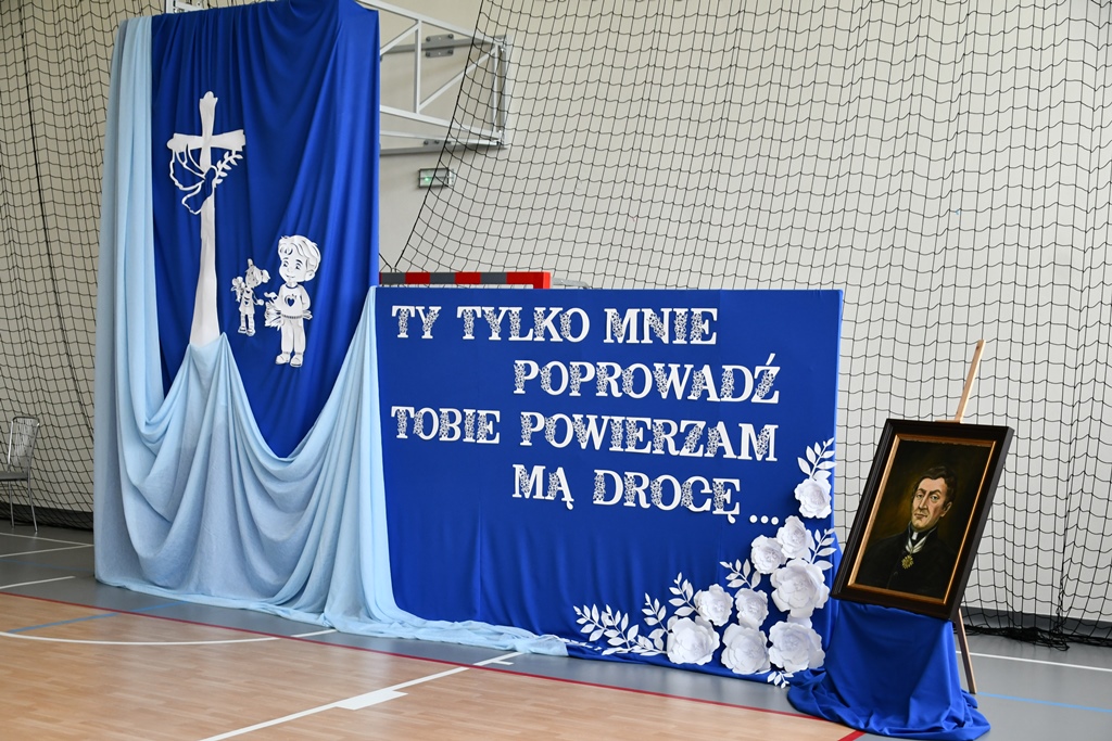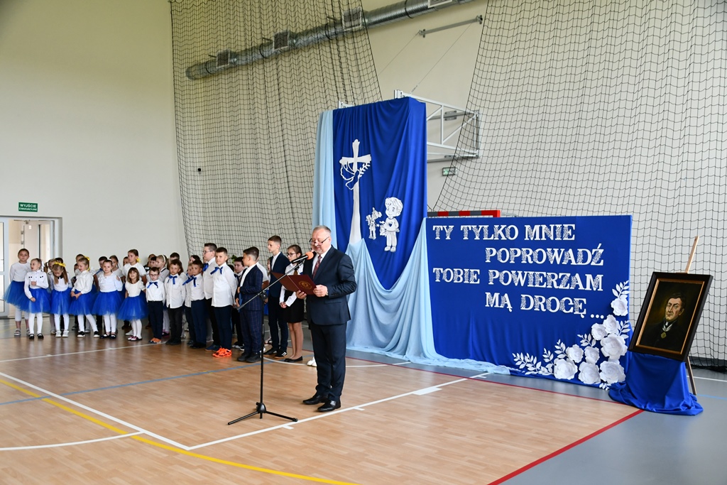 Biskupa powitał dyrektor Szkoły Andrzej Karpiesiuk. Przypomniał historię tej placówki oświatowej. Zwrócił uwagę na patrona Szkoły – ks. Franciszka Jakuba Falkowskiego. Pochodzący z pobliskiego Budlewa kapłan zasłynął jako twórca Instytutu Głuchoniemych – pierwszej w Polsce szkoły kształcącej dzieci głuche. Również dzieci i młodzież w przygotowanej części artystycznej nawiązywały do postaci wyjątkowego patrona. Nie zabrakło śpiewu z pokazywaniem oraz układów choreograficznych.