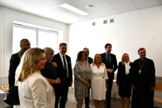 Druga część spotkania miała miejsce w nowo wyremontowanym Ośrodku Szkolno-Wychowawczym im. Kornela Makuszyńskiego w Węgrowie. Poprzez gest przecięcia wstęgi dokonano jego uroczystego otwarcia. Bp Piotr Sawczuk w modlitwie prosił o Boże błogosławieństwo i poświęcił odnowiony obiekt.