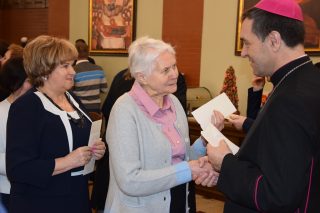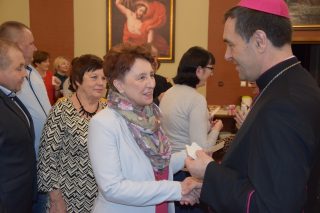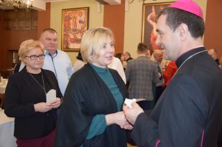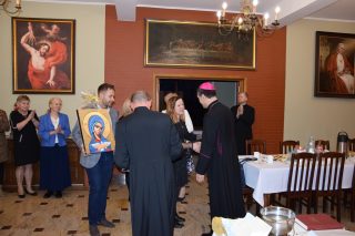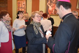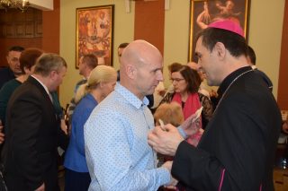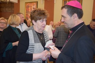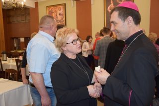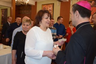 W imieniu przybyłych życzenia ks. Biskupowi złożyli przedstawiciele sokołowskiej wspólnoty Odnowy w Duchu Świętym. Jadwiga Porzezińska – odpowiedzialna w Diecezji Drohiczyńskiej za Odnowę wręczyła ks. Biskupowi swoiste sprawozdanie z działalności poszczególnych wspólnot oraz publikację prezentującą historię odnowy w Polsce. Spotkanie zakończyła wspólna agapa.