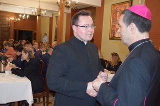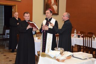 Rozpoczęto Mszą św. celebrowaną w seminaryjnej kaplicy pod przewodnictwem ks. bpa Piotra Sawczuka. W homilii Ekscelencja nawiązał do wydarzeń nad Jordanem, kiedy Chrystus z rąk św. Jana Chrzciciela przyjął chrzest. Towarzyszyły temu niezwykłe znaki, choćby w postaci rozlegającego się głosu. „My znajdujemy się w kościele, w przestrzeni szczególnej obecności Boga. Chcemy wznosić ku Niemu serca i słuchać Jego głosu. Nad Jordanem ten głos wskazał na Jezusa, otworzył nowy rozdział historii zbawienia. Są takie momenty i w naszym życiu, które otwierają oczy na nową rzeczywistość, która dotąd była przed nami zakryta. Trzeba nam dzisiaj pytać, czy my już poznaliśmy Chrystusa, czy spotkaliśmy Go, czy stanęliśmy przed Nim, by w gąszczu różnych komunikatów, różnych dźwięków, przepływających tłumów ludzi stwierdzić: To jest Syn Boży, to jest mój Zbawiciel, Baranek zabity i żyjący na wieki?” – powiedział. Jak zauważył, kolejnym krokiem po uznaniu w Jezusie Zbawiciela, jest obwieszczenie tej nowiny światu. Przypominał również, że „chrześcijaństwo jest religią wolności, choć raz po raz podnosi się jakieś wymyślone zarzuty, że komuś zagraża. Jeśli komuś zagraża, to tylko diabłu. On ustami ludzi opętanych, nieraz wołał na widok Jezusa, żeby odszedł. Oprócz diabła nikt nie mam powodu bać się Jezusa, bać się chrześcijaństwa.”