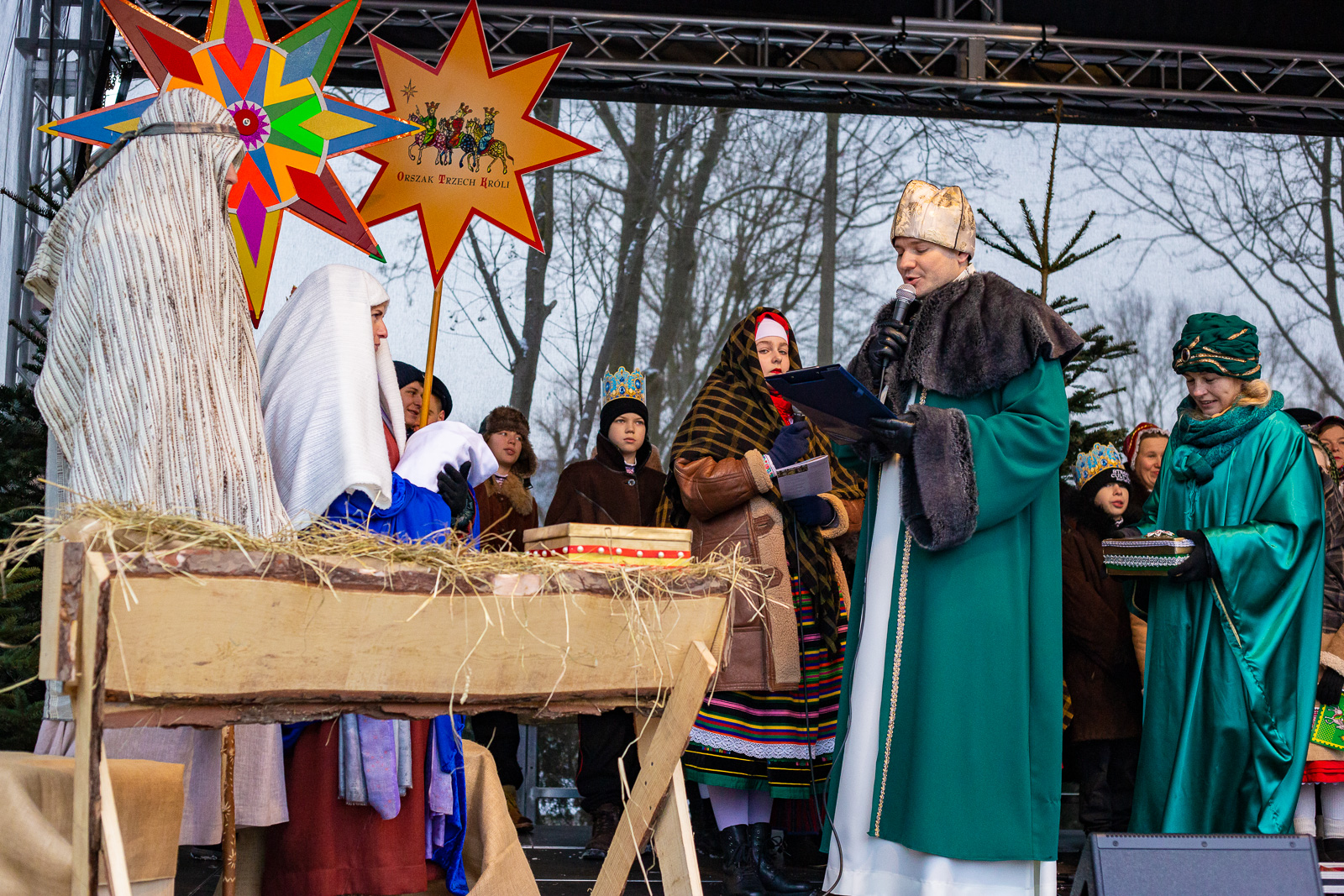 Orszak prowadził Zespół Pieśni i Tańca „Sokołowianie” w ludowych strojach, rycerze z Zespołu Szkół Centrum Kształcenia Rolniczego, pastuszkowie, aniołki, przedszkolaki i uczniowie szkół podstawowych.