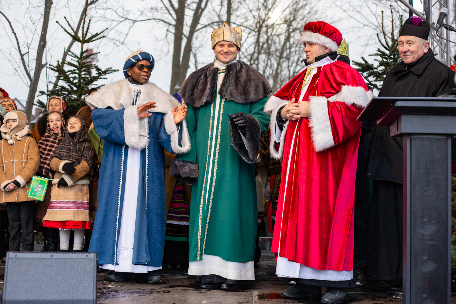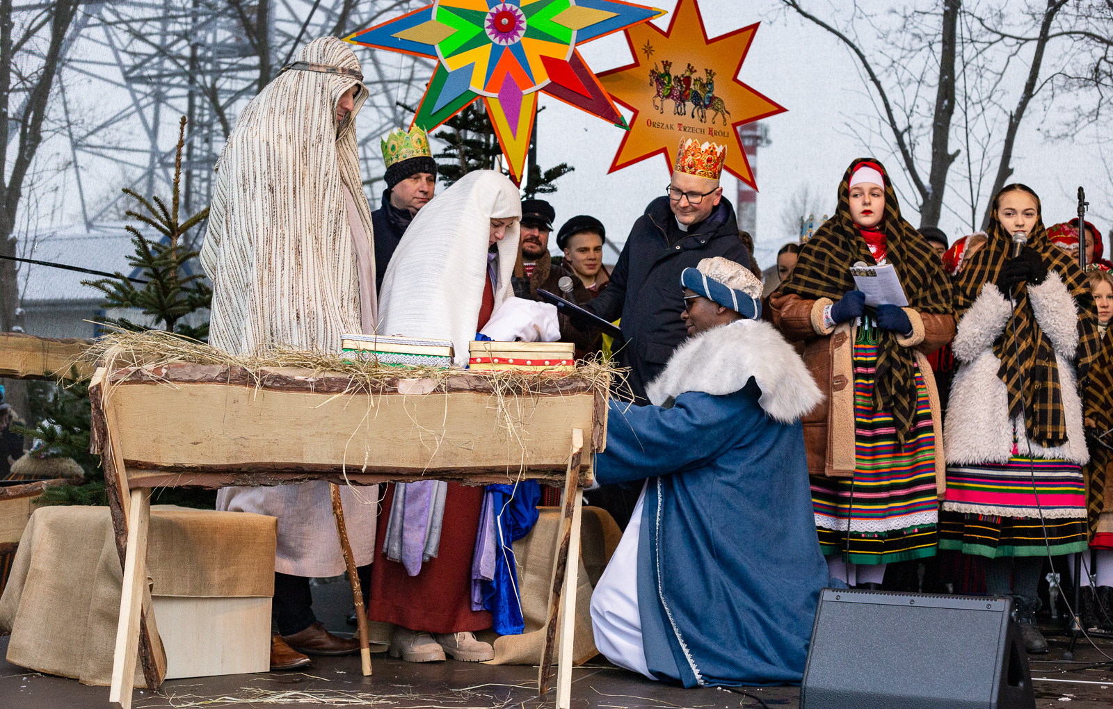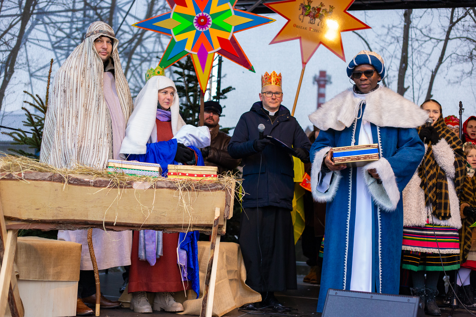 W role tegorocznych królów, Kacpra, Melchiora i Baltazara, wcielili się trzej księża z poszczególnych parafii sokołowskich: ks. Grzegorz Konopacki z parafii p.w. Miłosierdzia Bożego, al. Amos Makasa z parafii pw. ks. Jana Bosco oraz ks. Tomasz Łapiński z parafii Niepokalanego Serca NMP.