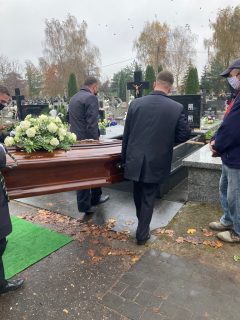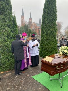 Rozpoczęto od obrzędu pochówku na cmentarzu parafialnym, gdzie złożono doczesne szczątki śp. Kapłana. Następnie sprawowano Mszę św. pogrzebową w jego intencji.
