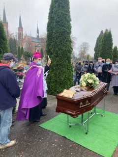 „Bazując na gorliwości poprzedników, odwołując się do długiej tradycji wyznawania wiary, szukając sojuszników w rodzinach, czy w pobożnych parafianach, trzeba pracować nad zbawieniem dusz. Trzeba też mieć głębokie przekonanie, że to nie człowiek zbawia, nawet najbardziej gorliwy, ale Bóg, Jego łaska. Dlatego najważniejsze jest zapewnienie dostępu do Bożego słowa i do sakramentów. Bardzo wiele śp. ks. Jan wypowiedział słów w imieniu Jezusa, niemało też rozdał Komunii świętych, a któż oceni obfitość zdrojów Miłosierdzia Bożego, jakie przeciskały się przez kratki konfesjonałów, w których przez lata zasiadał. Gromadzimy się dzisiaj, pokonując różne epidemiczne ograniczenia, by otoczyć zmarłego kapłana modlitwą i podziękować Bogu za jego życie i za jego ofiarną służbę” – powiedział ks. Biskup.