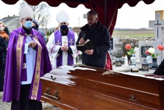 Po Eucharystii ciało śp. Kapłana spoczęło na cmentarzu parafialnym w Huszlewie.