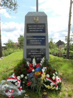 Żołnierze Napoleona zmarli z zimna, chorób i głodu podczas odwrotu z Rosji w latach 1812-1813. Trakt, którym armia wracała z Rosji wiódł przez nasz region. W Pobikrach mieścił się wówczas szpital polowy, w którym zmarło co najmniej 365 żołnierzy pochowanych we wspólnym grobie za wsią. Miejsce pochówku, setki lat przetrwało w pamięci mieszkańców, na początku XX wieku oznaczono je krzyżem, teraz wzniesiono tam pomnik. Granitowy obelisk z tablicą języku polskim, francuskim i angielskim wzniosły władze samorządowe, przy finansowej pomocy Rady Ochrony Pamięci Walki i Męczeństwa.