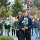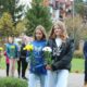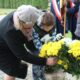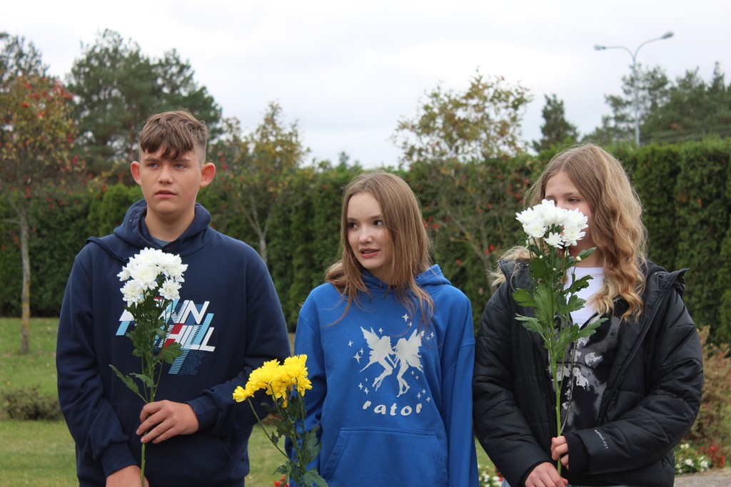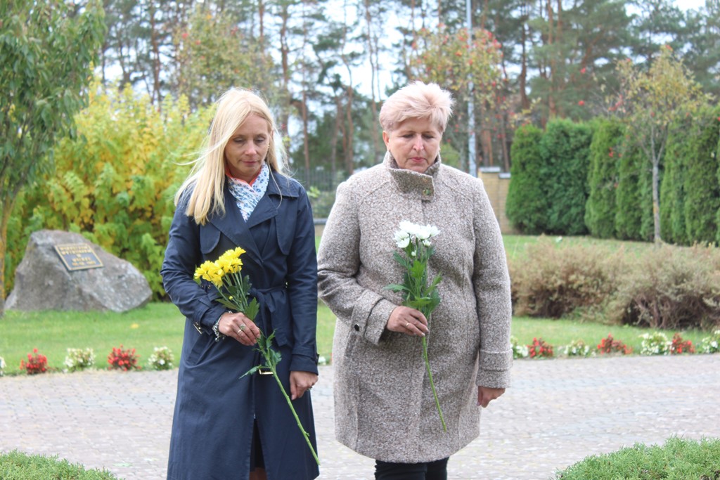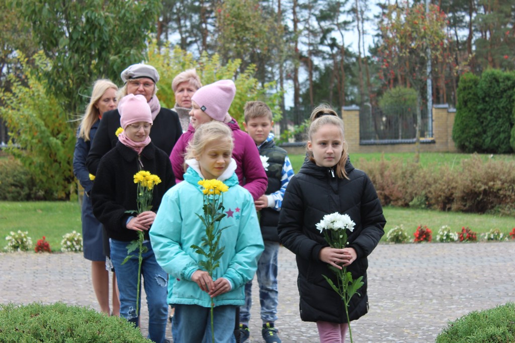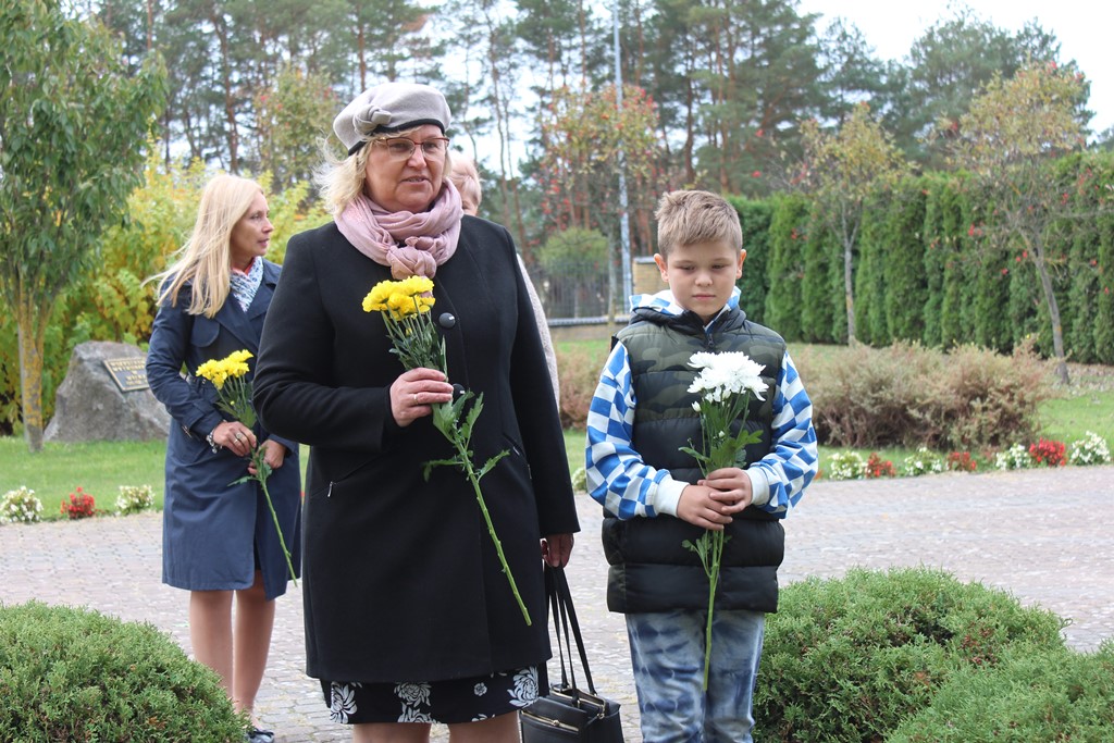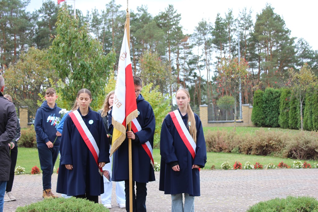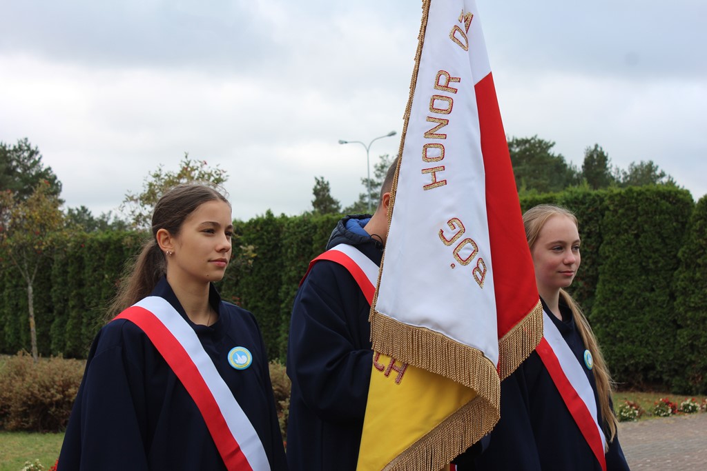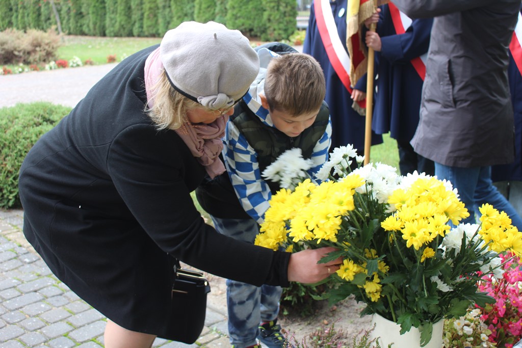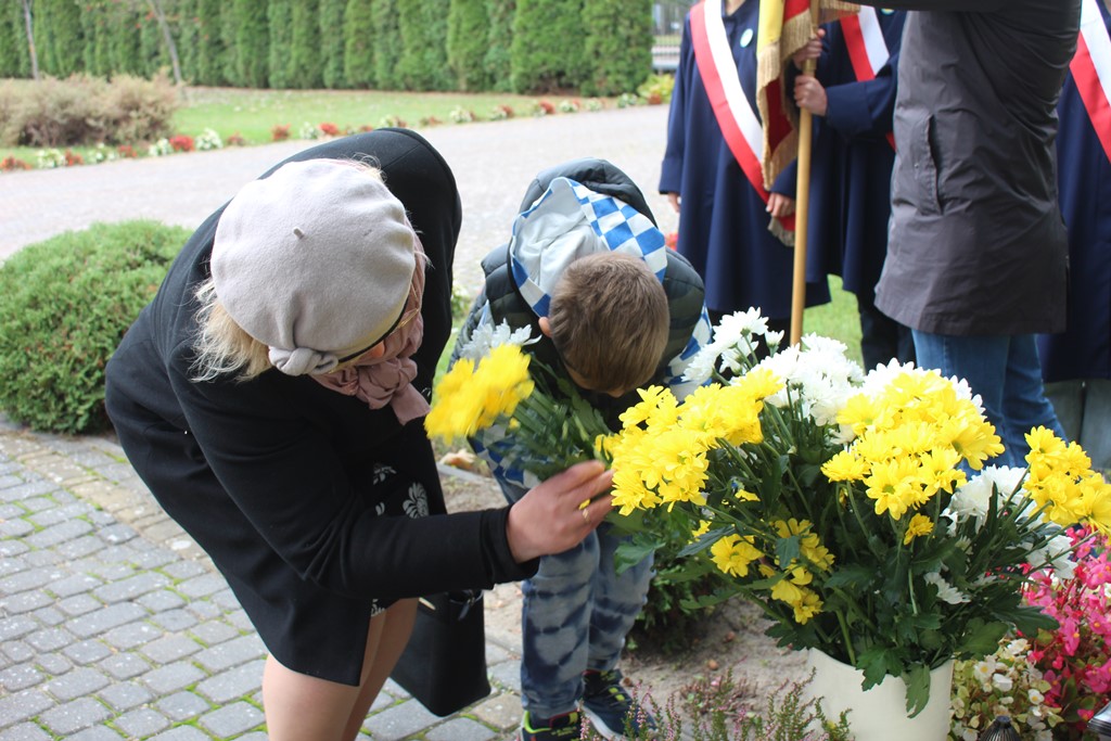 Tutaj katechetka Agnieszka Olendzka przypomniała historię Dnia Papieskiego, zaśpiewano hymn szkoły oraz „Barkę” ulubioną pieśń papieską i złożono kwiaty przy pomniku.