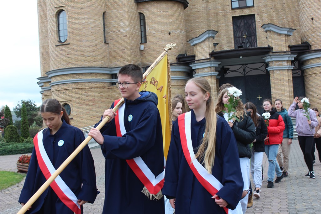 Chociaż nie są to wielkie uroczystości, to warto zachować w pamięci obraz dzieci z biało – żółtymi kwiatami w dłoniach, które chociaż nie pamiętają ziemskiej wędrówki Św. Jana Pawła II to w szkole poznają jego nauczanie, a wiele myśli Patrona noszą w swych dziecięcych sercach.