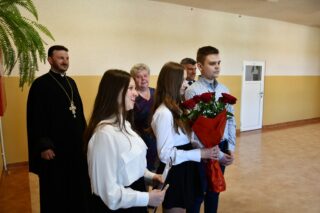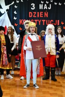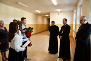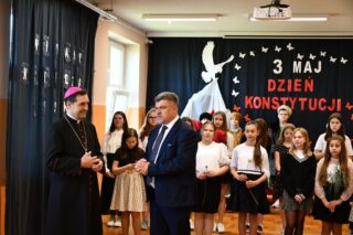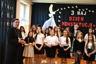 Uczniowie pod kierunkiem nauczycieli zaprezentowali część artystyczną poświęconą Konstytucji 3-go Maja. Jak zauważył Dyrektor szkoły, była to swoista lekcja historii, ukazująca słowem i śpiewem nie tylko samo wydarzenie ustanowienia Konstytucji, ale również jej treść, kontekst historyczny w jakim powstała oraz jej znaczenie. Ks. Biskup podziękował za spotkanie i życzył zarówno uczniom jak i nauczycielom nieustannego rozwoju.