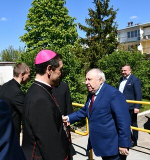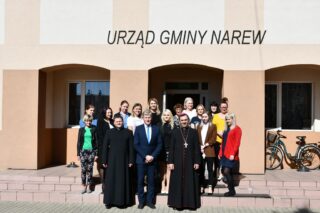Liturgiczne wspomnienie św. Stanisława Biskupa i Męczennika – uroczystość odpustowa w parafii Narew stanowił kolejny dzień wizytacji. Rozpoczęły go odwiedziny Zespołu Szkolno-Przedszkolnego w Narwi. W progu szkoły ks. Biskupa powitała delegacja uczniów wraz z dyrektorem Jerzym Ostapczukiem oraz jego zastępcą Marią Leszczyńską.