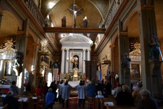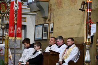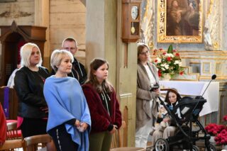 W niedzielę 7 maja br. po uroczystym ingresie do świątyni ks. proboszcz Krzysztof Dobrogowski, przedstawiciele dzieci, młodzieży oraz dorosłych parafian powitali Pasterza diecezji. Zgodnie z protokołem wizytacyjnym ks. Proboszcz przestawił sprawozdanie z działalności wspólnoty parafialnej. W homilii wygłoszonej podczas Eucharystii ks. Biskup przypomniał historię parafii sięgającą swoimi początkami czasów króla Zygmunta Starego. Obecny kościół, to drewniana budowla z XVIII w. „Dzisiaj stajemy z modlitewną wdzięcznością za opatrznościową Bożą opiekę nad tym cennym, zabytkowym kościołem przez całe jego dzieje, a jeszcze bardziej za opiekę nad gromadzącym się tu ludem” – powiedział.