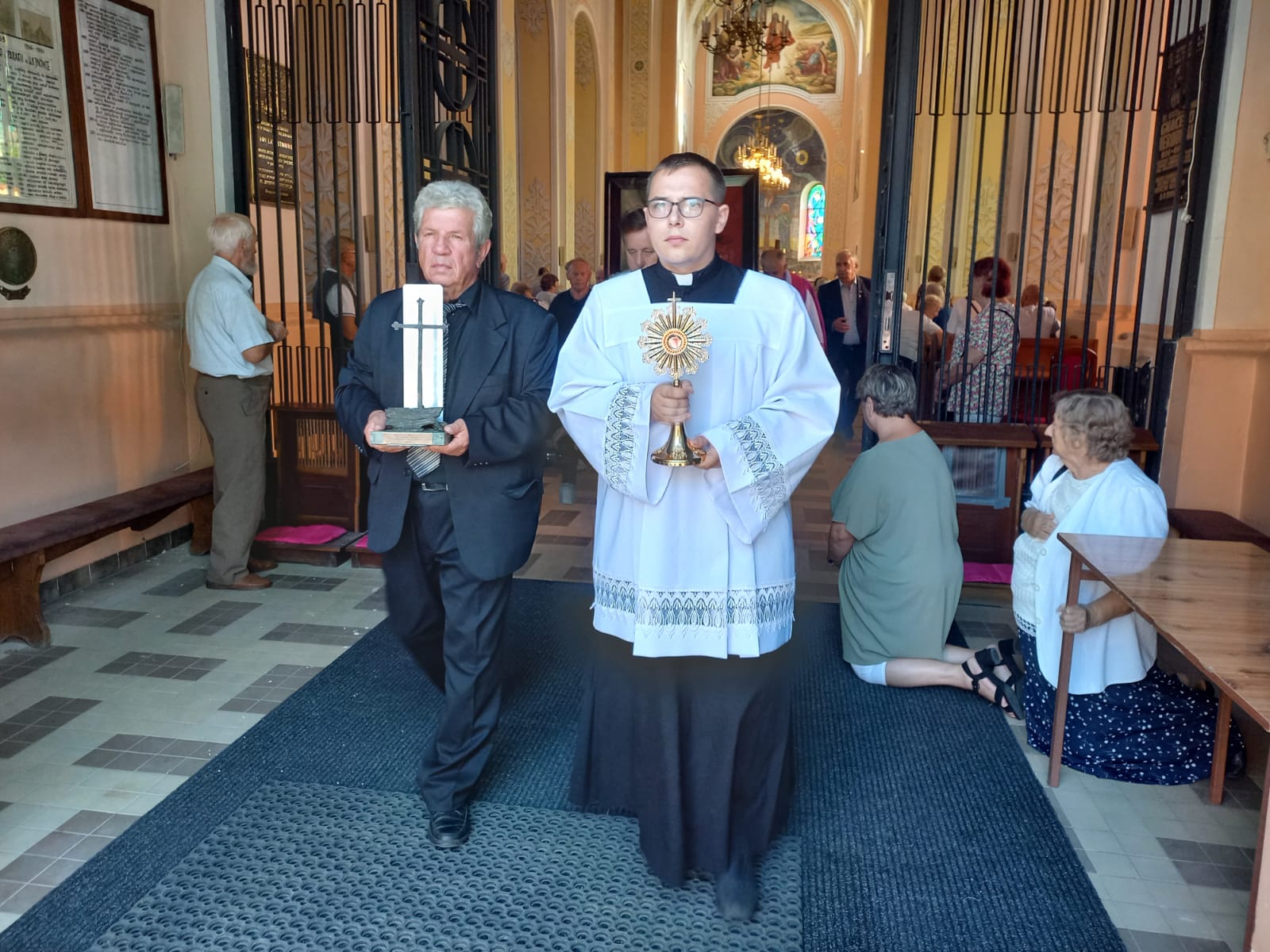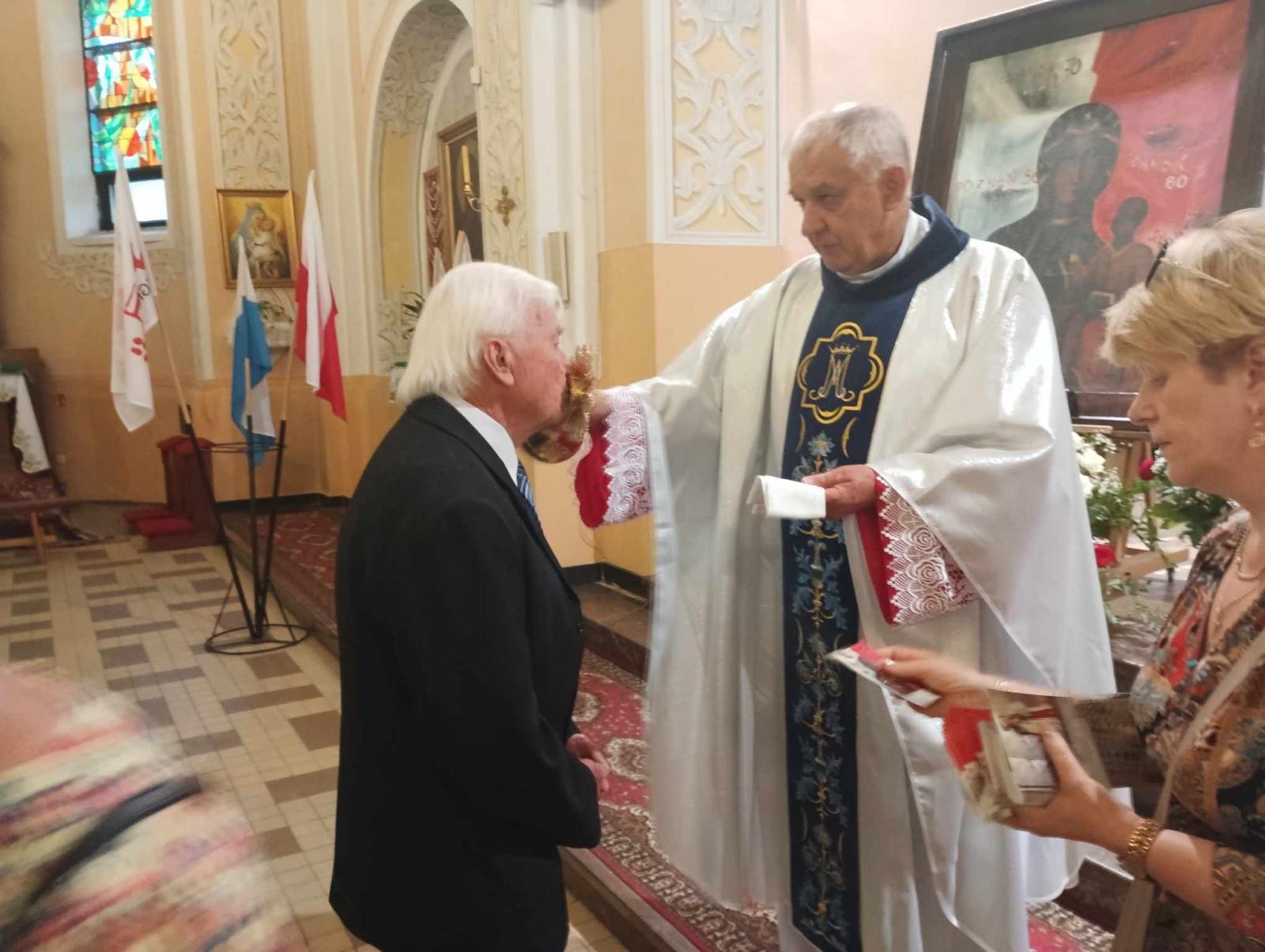 Peregrynację rozpoczęto od powitania świętych znaków, które zostały uroczyście przyjęte przez proboszcza parafii, księdza prał. Zbigniewa Niemyjskiego oraz licznie zgromadzonych parafian. Obraz Matki Bożej Solidarności będący symbolem nadziei i duchowego wsparcia dla ruchu Solidarności, wprowadził wszystkich w atmosferę modlitwy i jedności. Uroczystościom towarzyszył sztandar NSZZ Solidarności z Hajnówki. W programie peregrynacji znalazło się również miejsce na oddanie czci relikwiom błogosławionego Jerzego Popiełuszki. W relikwiarzu umieszczona jest cząstka mięśnia serca tego niezwykłego kapłana, który stał się symbolem walki o wolność i prawdę. Jego życie i męczeńska śmierć są inspiracją dla wielu, a obecność relikwii w Hajnówce przypomniała o wartościach, za które błogosławiony oddał swoje życie. Krzyż z Nowej Huty, kolejny z symboli peregrynacji, jest świadectwem walki religijnej oraz dążenia do prawdy i sprawiedliwości. Jako znak niezłomności i wiary, krzyż ten przypomina o trudnych czasach, w których wielu ludzi musiało stawić czoła prześladowaniom za swoje przekonania. W kontekście peregrynacji, krzyż stał się nie tylko symbolem cierpienia, ale także nadziei i siły w dążeniu do lepszego jutra. Peregrynacja tych świętych znaków była nie tylko duchowym przygotowaniem do nadchodzącej Ogólnopolskiej Pielgrzymki Ludzi Pracy na Jasną Górę, ale także okazją do zjednoczenia się w modlitwie i refleksji nad historią naszego narodu oraz jego wartościami. To wydarzenie w Hajnówce z pewnością pozostanie w pamięci uczestników jako czas duchowego odrodzenia oraz przypomnienie, że wartości, które głosili błogosławiony Jerzy Popiełuszko są nadal aktualne i potrzebne w dzisiejszym świecie.