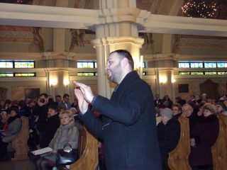 Dalej zauważył, że przegląd kolęd jest zwyczajem, który wpisuje się w parafię św. Andrzeja Boboli, ale jest tez okazją podziękowania za pracę organistów i chórzystów – Warto podkreśli, zauważyć i podziękować za ten trud, który jest w naszych parafiach. Trud organistów i tych, którzy przychodzą na próby, ćwiczą, starają się ubogacić orędzie głoszone w naszych kościołach. Bóg zapłać tym, którzy rezygnują z czegoś innego, aby służyć Bogu, aby w taki sposób jaki potrafi głosić to orędzie, że Jezus jest tym który nas ukochał i pragnie nas zbawić. Na koniec zachęcił, byśmy wszyscy swoim przykładem głosili, że Jezus jest Panem naszego życia.