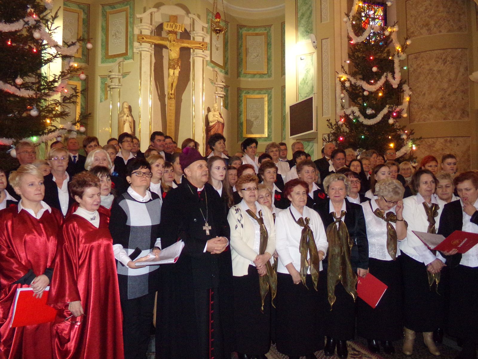 Kolędy mają słowa i melodie, ale dziś w kościele słyszałem tylko wasze serca mówił ks. bp Tadeusz Pikus podczas 5. Kolędowego Przeglądu Chórów i Zespołów Wokalnych Przegląd, który odbył się w niedzielę, 15 stycznia poprzedziła Msza św. pod przewodnictwem ks. Biskupa. W koncelebrze uczestniczyli też proboszcz parafii ks. kan. Jan Koc i diecezjalny duszpasterz organistów i chórzystów ks. Wiesław Niemyjski.