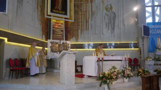 Członkinie żywego różańca w Bielsku Podlaskim o godzinie 15.00 uczestniczyły w koronce do miłosierdzia Bożego, a następnie w Mszy świętej koncelebrowanej, której przewodniczył i słowo Boże wygłosił ks. Dariusz Kujawa, proboszcz parafii. Na przykładzie św. Moniki, wołającej o miłosierdzie dla męża poganina i syna Augustyna ukazał działanie Boga miłosiernego, które wyraża się w przemianie serca człowieka. Bóg w swoim miłosierdziu, nawet człowieka pogubionego i uwikłanego w grzech może doprowadzić do świętości. Każdy grzesznik może zostać świętym. Cud przemiany zawsze dokonuje się mocą miłosierdzia Bożego. Dlatego warto pielgrzymować do Bram Miłosierdzia, które są w naszej Diecezji, aby doświadczyć miłości Boga, która pociesza, przebacza i daje nadzieję. Warto oddawać w sakramencie pokuty swe grzechy i przyjmować miłosierdzie, które nadaje sens naszemu życiu i pokazuje drogę do zjednoczenia z Bogiem.