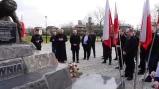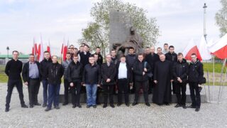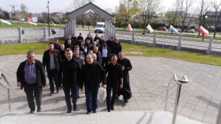 Uczestnicy pielgrzymki chwilę zatrzymali się przy pomniku Katyńsko-Smoleńskim, będącym swoistą Golgotą Wschodu, który symbolicznie upamiętnia wiele miejsc, gdzie za ojczyznę oddawali życie Polacy. Genezę powstania i główną myśl wyrażoną w tym niezwykłym dziele przybliżył ks. Dariusz Kujawa, proboszcz parafii. Ks. rektor poprowadził modlitwę za tych, którzy oddali życie za Ojczyznę.