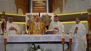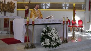 Następnie wszyscy przeszli przez Drzwi Święte i wysłuchali krótkiego słowa miejscowego proboszcza, który przybliżył główną ideę ołtarza Miłosierdzia Bożego. Wszyscy odmówili stosowne modlitwy dla zyskania odpustu zupełnego. Po czym uczestniczyli we Mszy Świętej koncelebrowanej. Przewodniczył jej ks. rektor. Słowo Boże wygłosił ojciec duchowny Seminarium. Zwrócił uwagę, że o Bożym miłosierdziu można mówić nie tylko w Nowym Testamencie, ale również w Starym Testamencie, gdzie jest wiele śladów objawiających ten największy przymiot Boga. Na koniec Mszy Świętej słowa podziękowania skierował ks. Kujawa. Wyrażając radość z przybycia, prosił wszystkich uczestników pielgrzymki o modlitwę, aby ta świątynia mogła kiedyś stać się Sanktuarium Bożego Miłosierdzia.