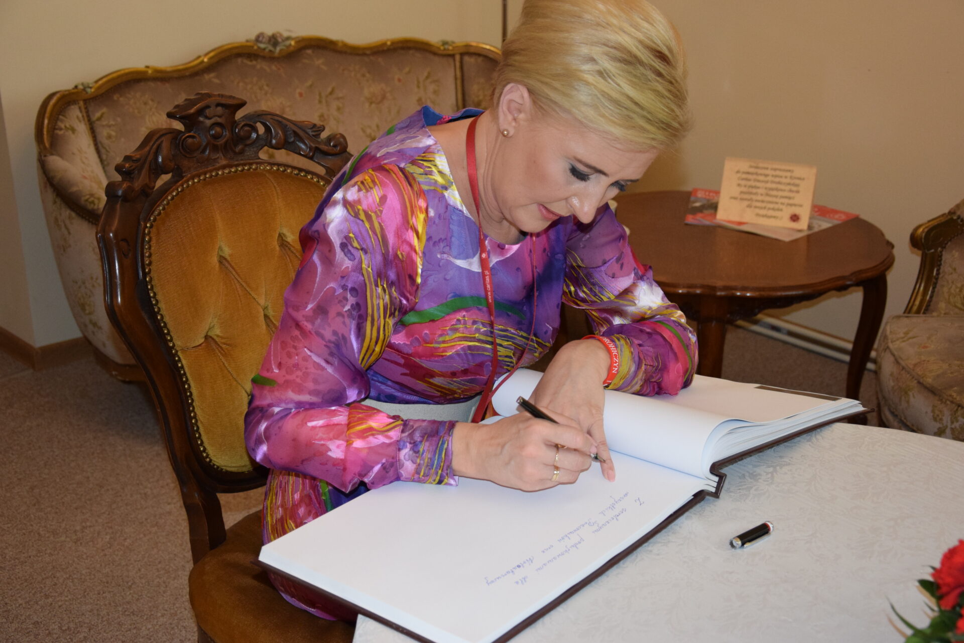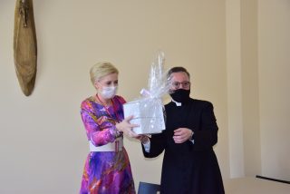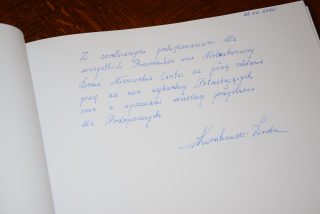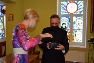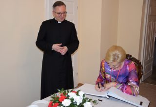 Każdemu spotkaniu towarzyszyła nie tylko miła rodzinna atmosfera, ale również wymiana podarunków. Na pamiątkę spotkania Pani Prezydentowa dokonała wpisu do Kroniki Caritas Diecezji Drohiczyńskiej.