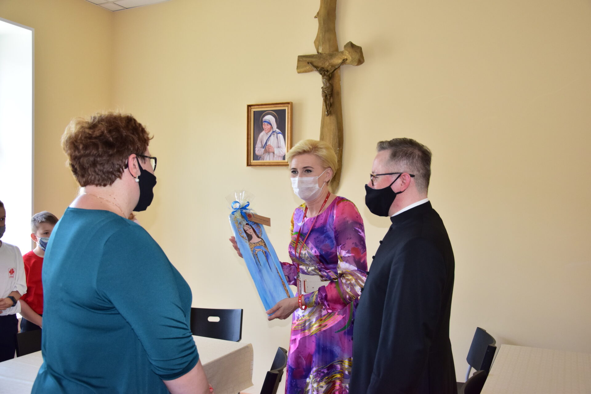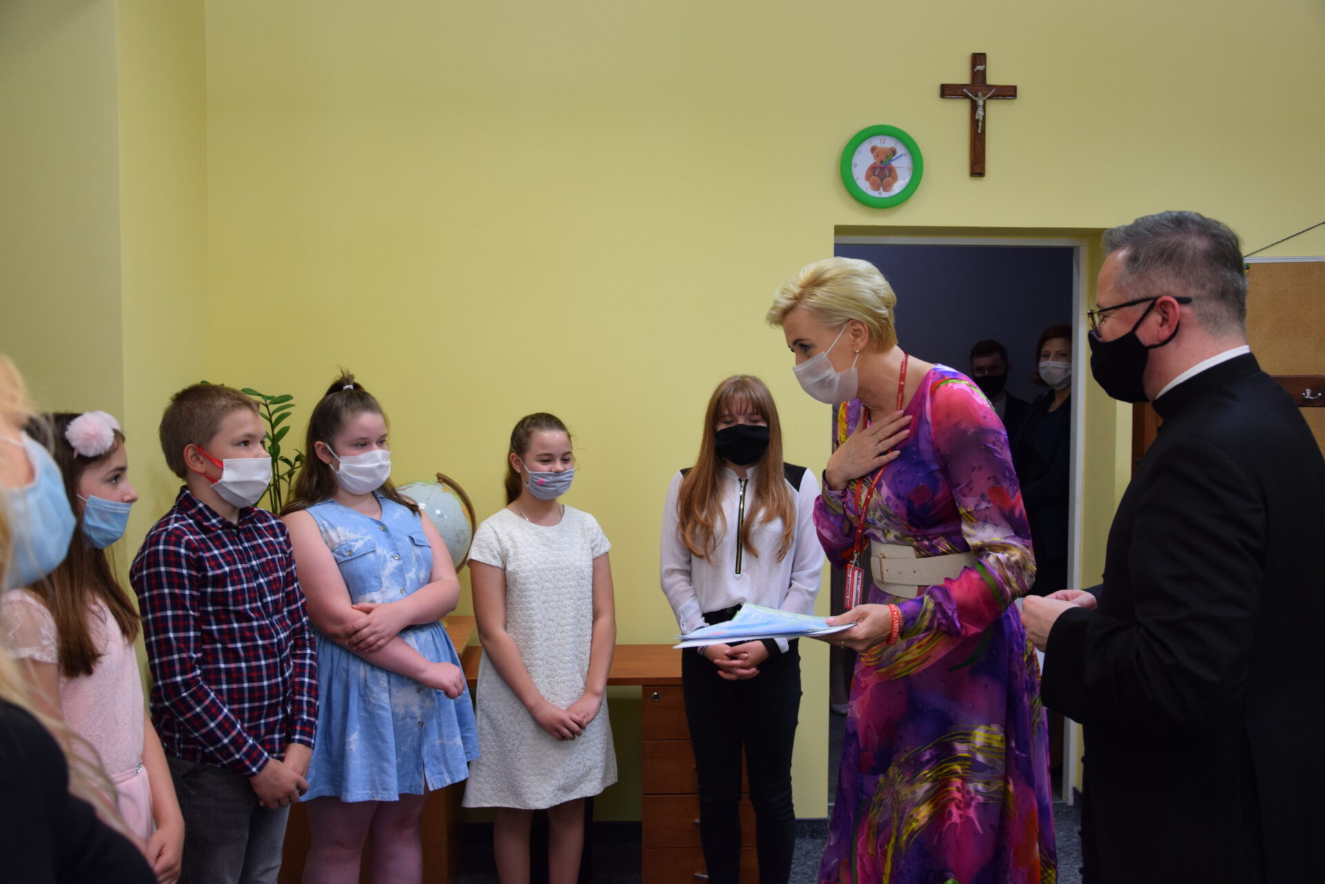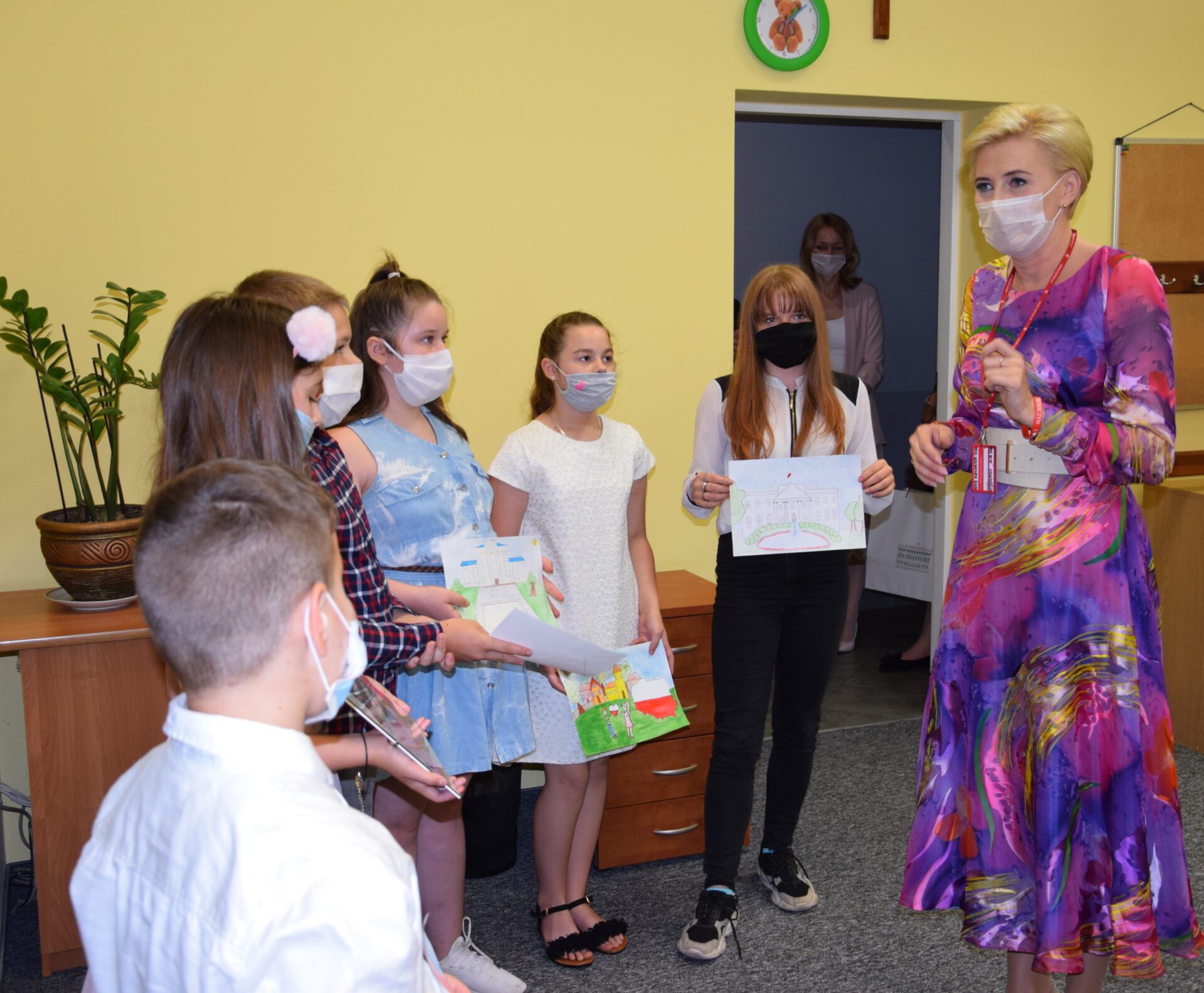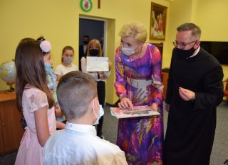 Miłym gestem ze strony podopiecznych ze świetlicy socjoterapeutycznej, było przekazanie Pierwszej Damie własnoręcznie wykonanych prac. W rozmowie z dziećmi Agata Kornhauser-Duda podjęła temat związany ze zdalnym nauczeniem w dobie koronawirusa. Podopieczni opowiadali o trudnościach, z jakimi się musieli zmierzyć.